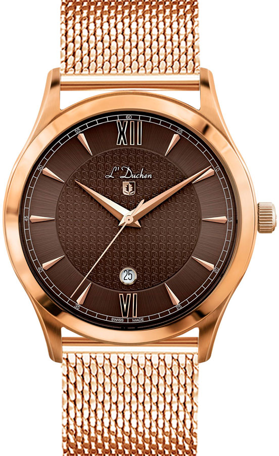 Стильный аксессуар с классическими нотками, каждая деталь которого создана в лучших традициях многовекового часового искусства. Время для успешных мужчин. Carcassonne. Мужские часы с круглым стальным корпусом. Циферблат украшен фирменным логотипом L'Duchen и декоративным узором с паттерном в форме дубового листа, символизирующего мудрость и долголетие. Метки в виде штрихов и римских цифр 6, 12. Окошко даты находится в положении 6 часов. Рифленая заводная головка. Браслет миланского плетения.