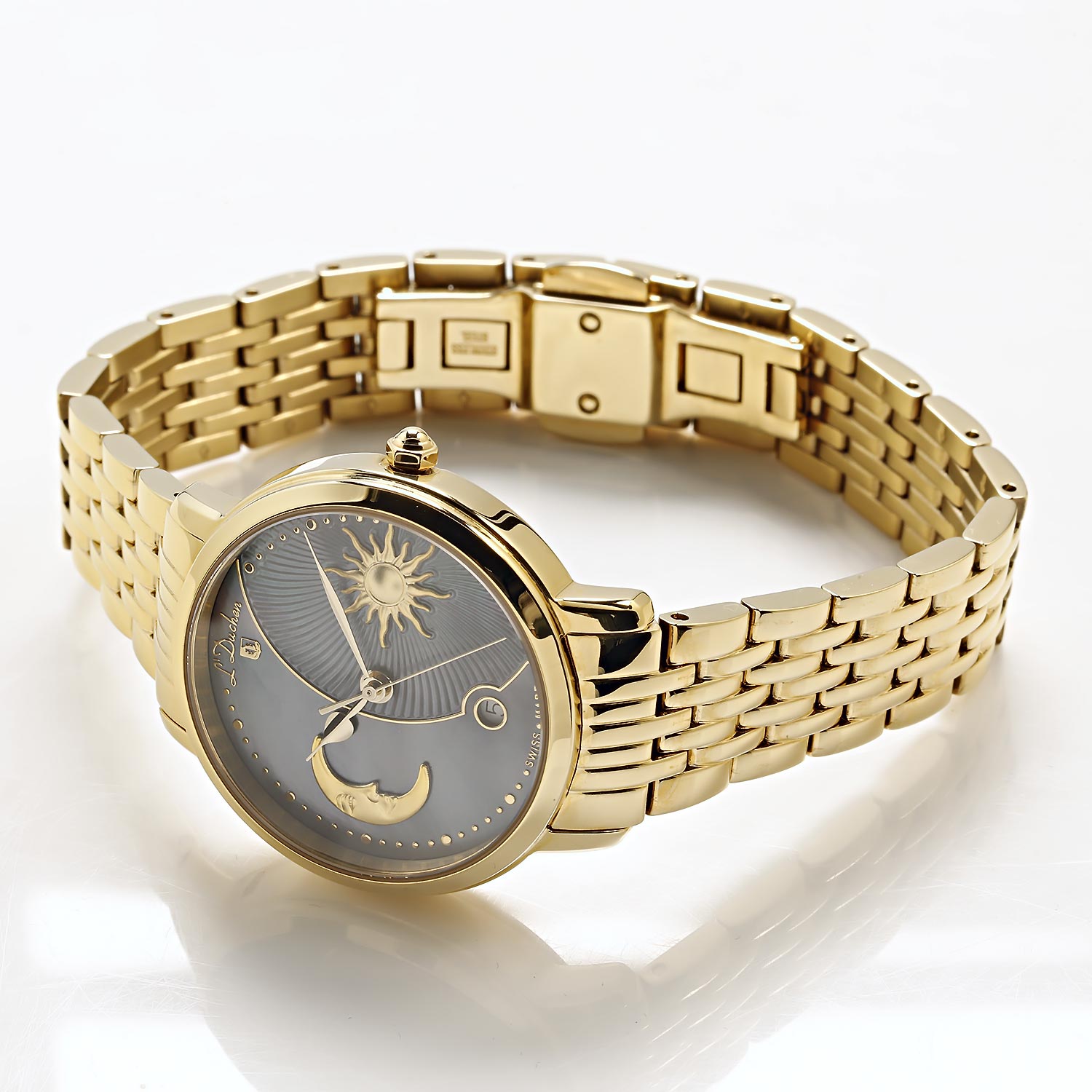 Элегантный аксессуар с интригующим дизайном. Эти часы идеально подойдут женщине, которая предпочитает изысканный стиль. Day & Night. Кварцевые часы со швейцарским механизмом. Циферблат с условным разделением суток на день и ночь. Круглый стальной корпус. Окошко даты.