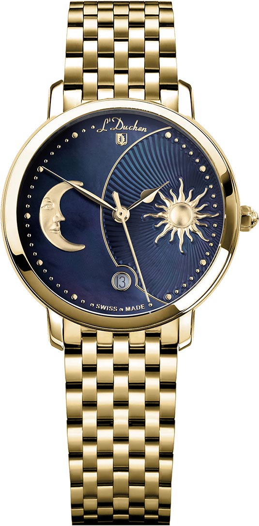 Элегантный аксессуар с интригующим дизайном. Эти часы идеально подойдут женщине, которая предпочитает изысканный стиль. Day & Night. Кварцевые часы со швейцарским механизмом. Циферблат с условным разделением суток на день и ночь. Круглый стальной корпус. Окошко даты.