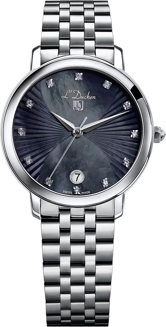 Изысканность классической формы и интригующий блеск кристаллов - то, что нужно современной леди. Eternity. Кварцевые часы со швейцарским механизмом. Перламутровый циферблат с фианитами вместо меток. Круглый стальной корпус. Окошко даты.