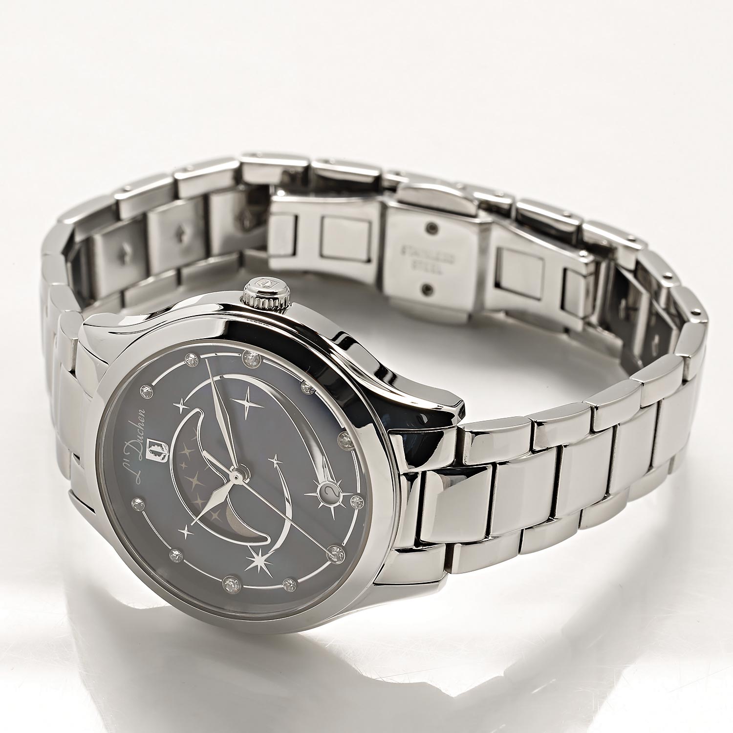 Россыпь звезд на циферблате и сияние кристаллов непременно зарядят вас романтичным настроением. Perseides. Женские кварцевые часы со швейцарским механизмом. Стальной круглый корпус. Браслет с раскладывающейся застежкой. Окошко даты.