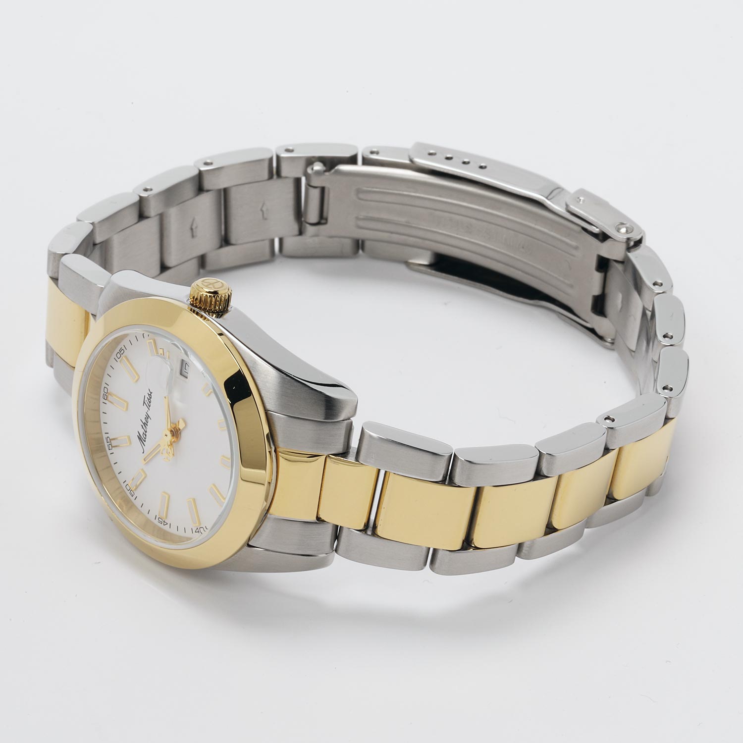Эти великолепные часы идеально будут смотреться как со стилем casual, так и с деловой одеждой. Mathy I. Женские часы с круглым стальным корпусом. Окошко даты с увеличительным стеклом. Рифленая заводная головка. Браслет с раскладывающейся застежкой.