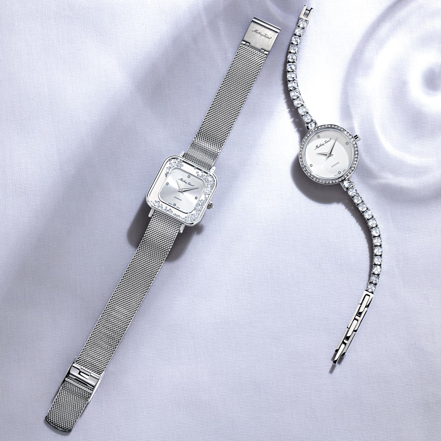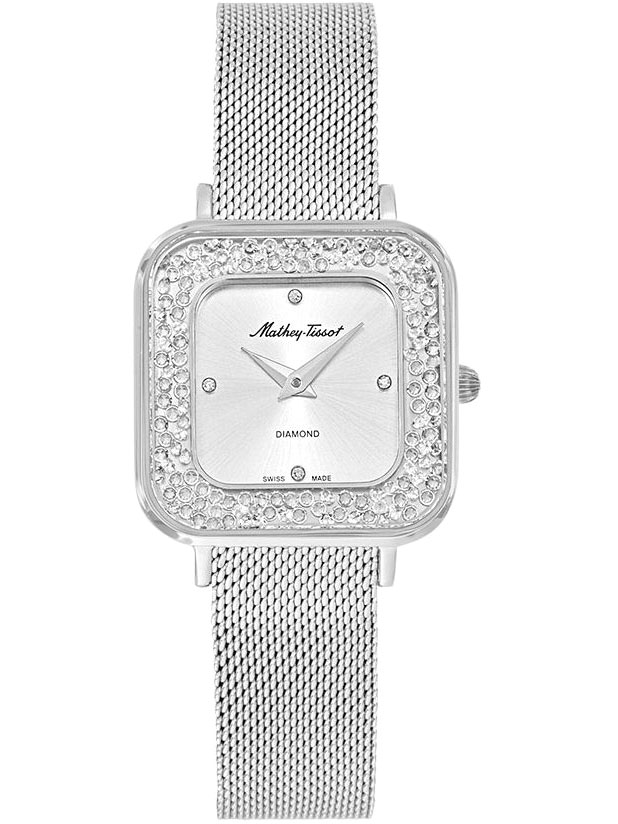 Солидный дизайн часов создает безукоризненный аксессуар для тех, кто заботится о своем имидже и стиле. Швейцарские женские часы. В механизме 4 камня. Квадратный стальной корпус с минеральным стеклом. Циферблат выполнен по технологии Sunray (солнечные лучи) и украшен кристаллами. Клиновидные стрелки в стиле Dauphine. Секундная стрелка отсутствует. Метки в виде точек. Рифленая заводная головка. Удобный и надежный стальной браслет миланского плетения.