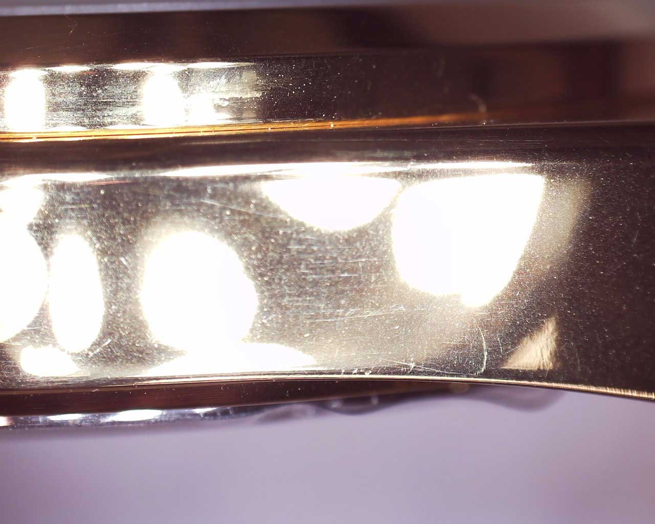 Стрелки и метки с люминесцентным покрытием SuperLumiNova, которое светится в темноте после непродолжительной зарядки на свету. Окошко даты находится в положении 3 часа. Сатинированный стальной браслет с PVD покрытием цвета желтого золота и застежкой-бабочкой.