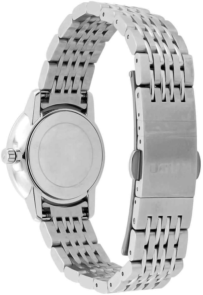 Эти очаровательные часы созданы для того, чтобы вы с наслаждением проводили каждую минуту. Женские швейцарские часы Coupole Classic. Круглый стальной корпус. Перламутровый циферблат. Накладные метки в виде штрихов. Листовидные стрелки в стиле Feuille. Рифленая заводная головка. Надежный стальной браслет с раскладывающейся застежкой.