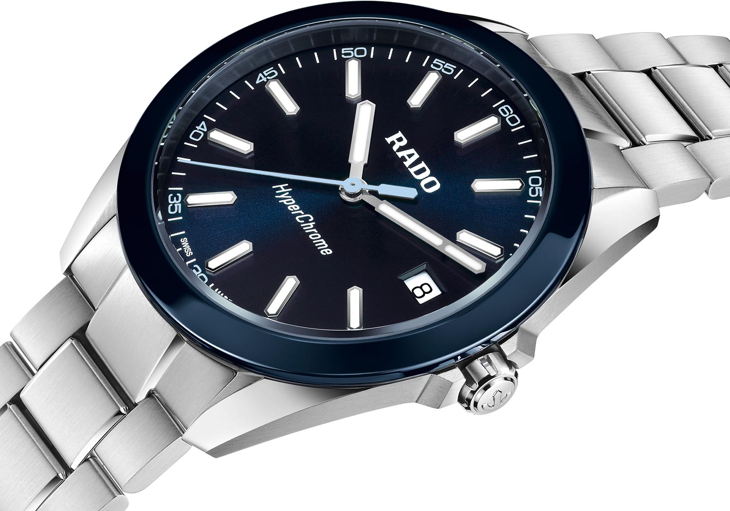 Швейцарские наручные мужские часы HyperChrome Quartz. В механизме 3 камня, он сочетает в себе технологии PreciDrive и HeavyDrive, обеспечивая точную регулировку и поддерживает отклонение не более ±10 секунд в год. Круглый стальной корпус с полированной и сатинированной отделкой. Гладкий керамический безель. Циферблат выполнен по технологии Sunray (солнечные лучи).