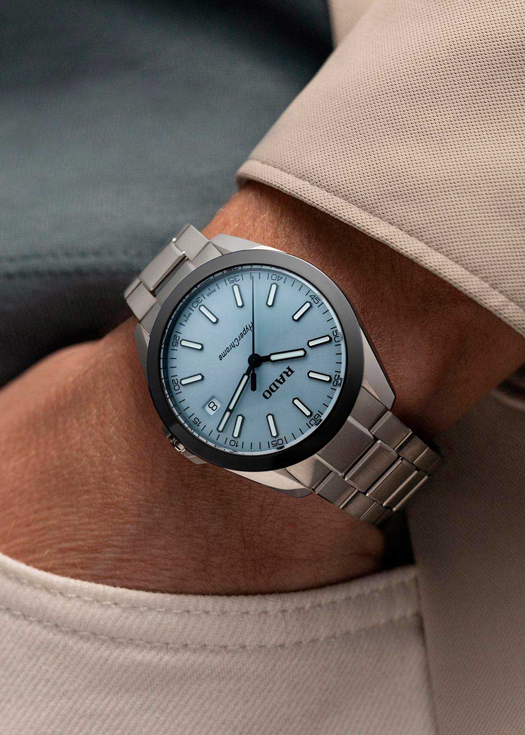Швейцарские наручные мужские часы HyperChrome Quartz. В механизме 3 камня, он сочетает в себе технологии PreciDrive и HeavyDrive, обеспечивая точную регулировку и поддерживает отклонение не более ±10 секунд в год. Круглый стальной корпус с полированной и сатинированной отделкой. Гладкий керамический безель. Голубой лакированный циферблат.