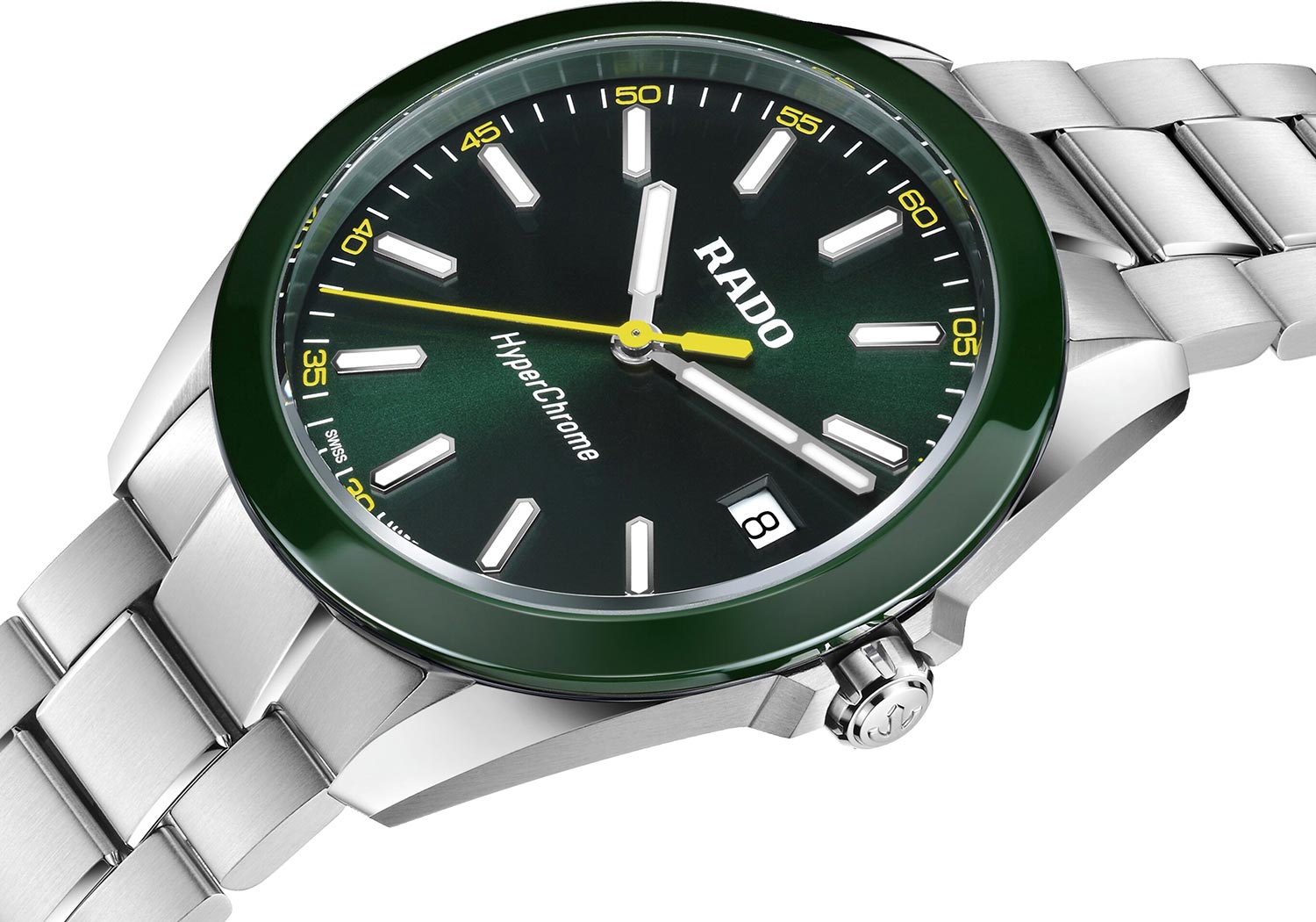 Швейцарские наручные мужские часы HyperChrome Quartz. В механизме 3 камня, он сочетает в себе технологии PreciDrive и HeavyDrive, обеспечивая точную регулировку и поддерживает отклонение не более ±10 секунд в год. Круглый стальной корпус с полированной и сатинированной отделкой. Гладкий керамический безель. Циферблат выполнен по технологии Sunray (солнечные лучи).