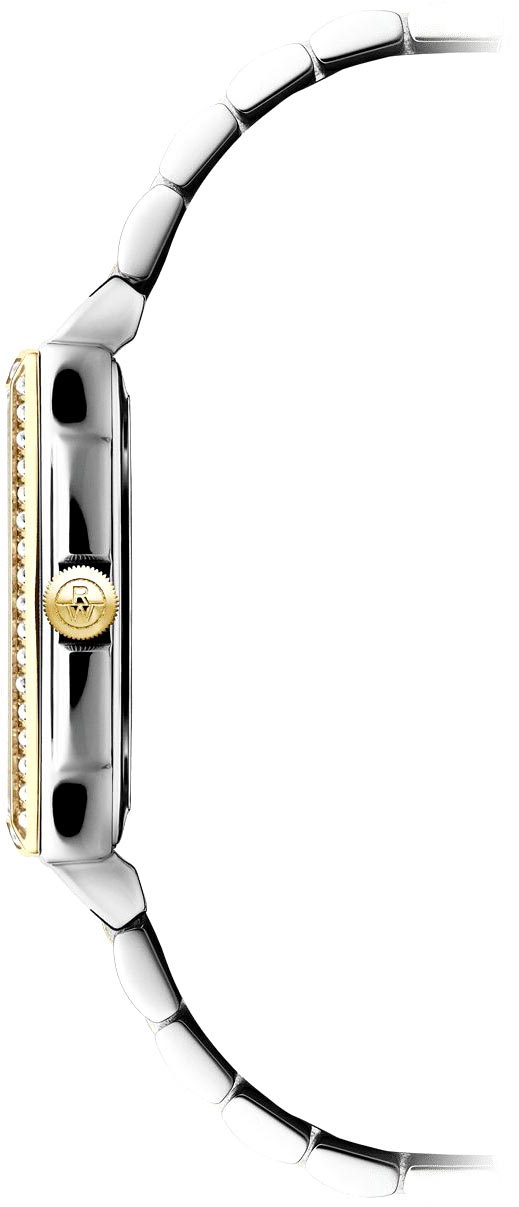 Очаруйте себя внешней безупречностью этих часов. Классическая элегантность и сияние бриллиантов непременно обратят на себя внимание в любом окружении. Женские часы в прямоугольном корпусе, украшенном бриллиантами. Перламутровый циферблат с метками в виде римских цифр и точек, инкрустированных бриллиантами. Окошко даты находится в положении 3 часа. Заводная головка с защитой украшена логотипом RW. Стальной браслет с раскладывающейся застежкой. Застежка с двойной системой защиты.