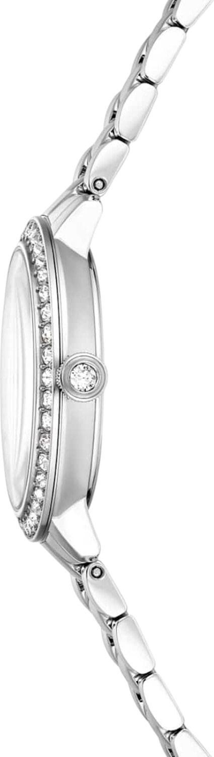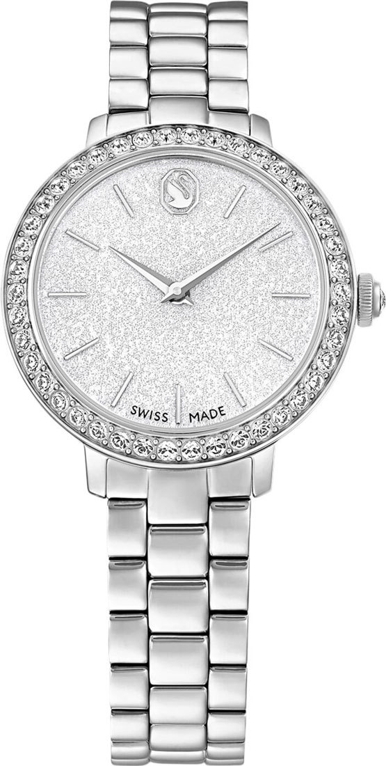Женские кварцевые часы Matrix 3-Link. Стальной круглый корпус. Безель украшен паве из 42 кристаллов. Циферблат с эффектом мерцания украшен логотипом Swarovski в виде лебедя в положении 12 часов.