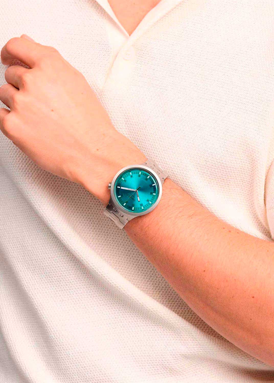 Наручные кварцевые унисекс часы Aqua Shimmer. Круглый стальной корпус с пескоструйной обработкой. Циферблат выполнен по технологии Sunray (солнечные лучи). Накладные метки в виде штрихов с дублированием арабскими цифрами. Прямоугольные стрелки в стиле Baton. Метки и стрелки с люминесцентным покрытием, которое светится в темноте после непродолжительной зарядки на свету. Стекло из многослойного акрила. Гладкая заводная головка находится в положении 2 часа. Надежный стальной браслет с раскладывающейся застежкой. Благодаря звеньям, браслет можно регулировать по длине.
