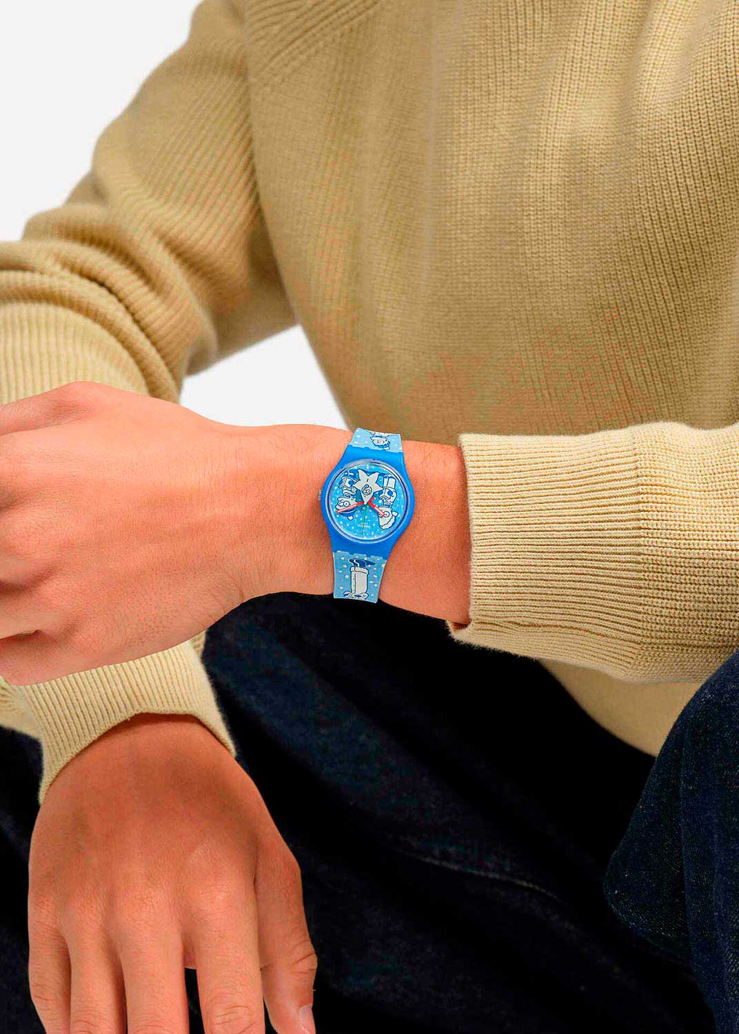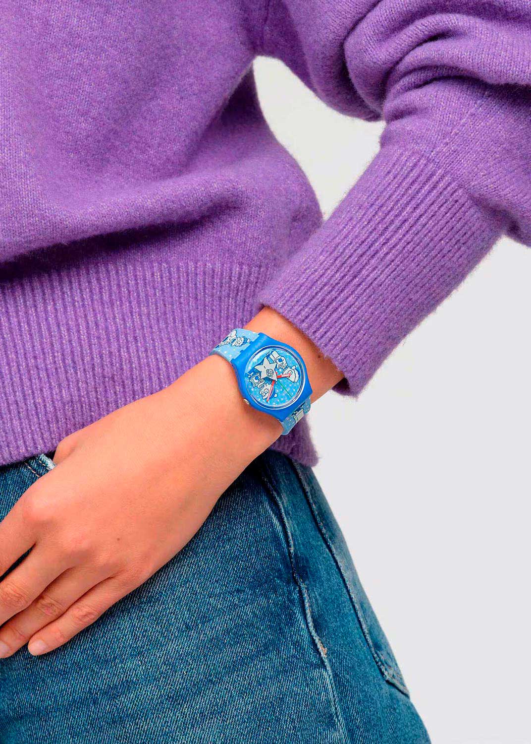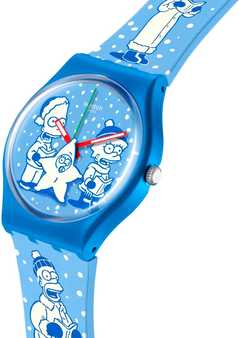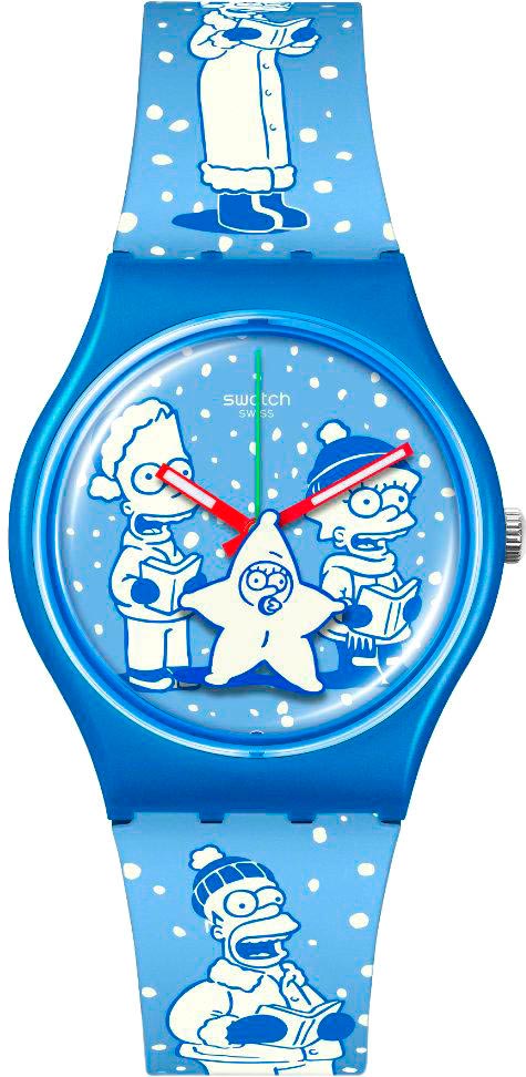 Наручные кварцевые унисекс часы Tidings of Joy из коллекции The Simpsons. Сюжет, изображенный на часах, позаимствован из самого первого эпизода популярного мультсериала. Круглый матовый корпус из пластика. Циферблат без меток. Красные прямоугольные стрелки в стиле Baton с люминесцентным покрытием, которое светится в темноте после непродолжительной зарядки на свету. На стекло нанесено белое изображение самого младшего члена семейства Simpsons – Мэгги Симпсон (Maggie Simpson). Стекло из многослойного акрила. Рифленая заводная головка. Силиконовый ремешок с синим тренчиком с логотипом The Simpsons. Классическая полимерная застежка.