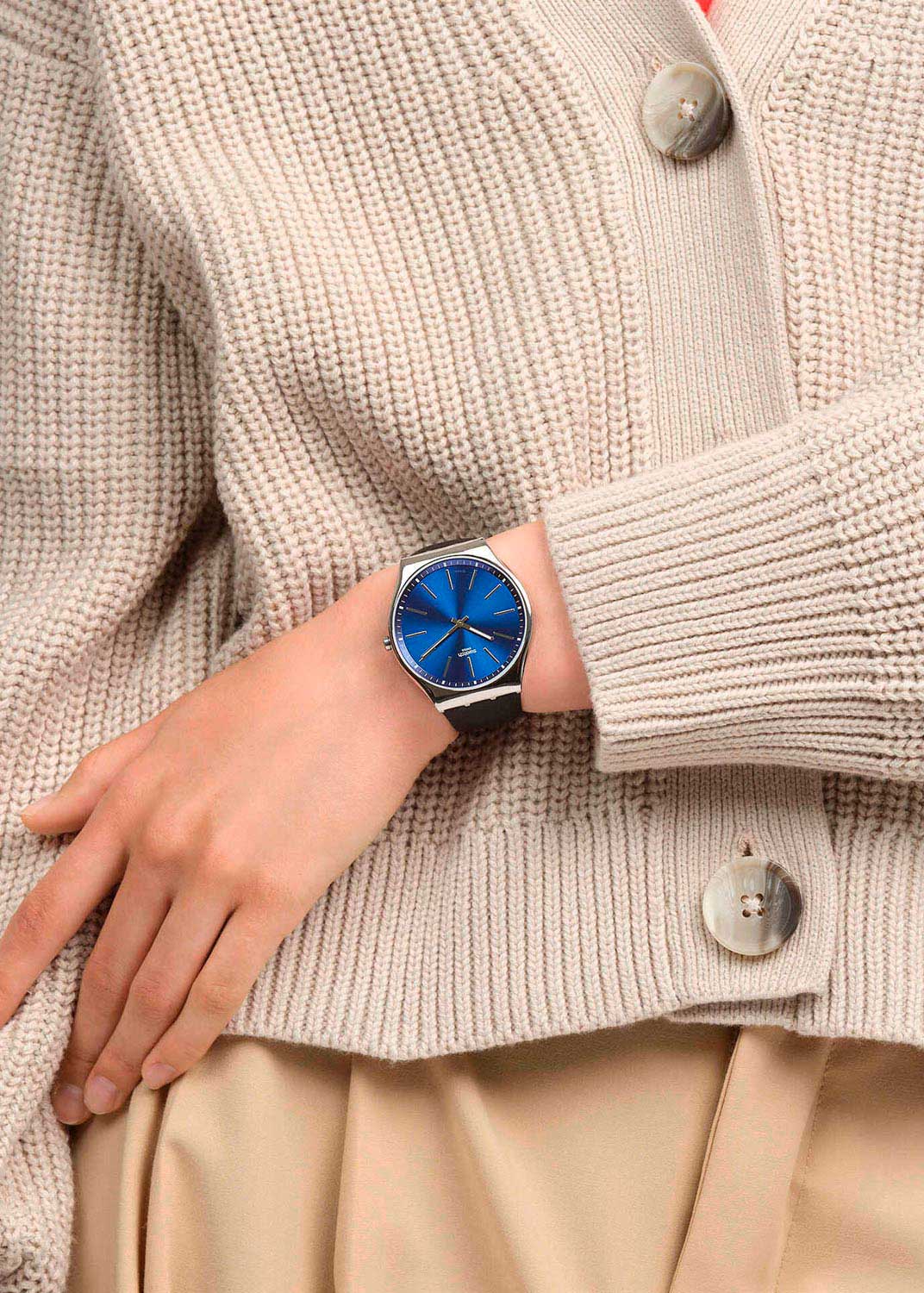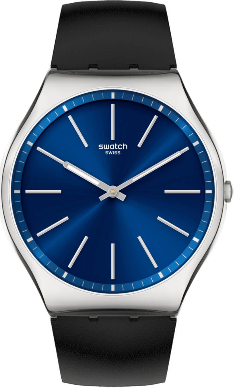 Кварцевые унисекс часы Formal Blue 42. Круглый стальной корпус. Циферблат выполнен по технологии Sunray (солнечные лучи). Накладные метки в виде штрихов. Заостренные прямоугольные стрелки в стиле Baton с люминесцентным покрытием, которое светится в темноте после непродолжительной зарядки на свету. Циферблат защищен минеральным стеклом. Миниатюрная гладкая заводная головка. Кожаный ремешок с классической застежкой.