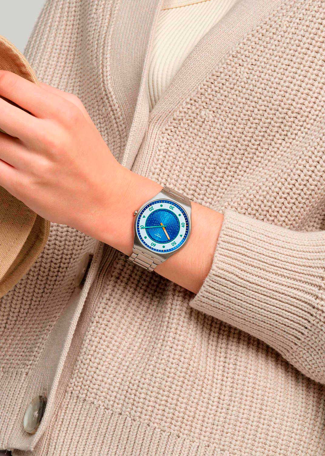 Кварцевые унисекс часы Splash Dance. Круглый стальной корпус с матовой отделкой. Фактурный циферблат с метками в виде точек и арабских цифр. Заостренные прямоугольные стрелки в стиле Baton с люминесцентным покрытием, которое светится в темноте после непродолжительной зарядки на свету. Циферблат защищен минеральным стеклом. Миниатюрная гладкая заводная головка. Надежный стальной браслет с матовой отделкой. Раскладывающаяся застежка. Благодаря звеньям, браслет можно регулировать по длине.