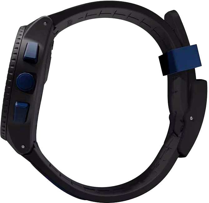 Функциональные унисекс часы-хронограф с секундомером Kaicco. Круглый матовый корпус из пластика. Безель с секундной шкалой. Циферблат выполнен по технологии Sunray (солнечные лучи). Метки в виде арабских цифр и точек. Заостренные прямоугольные стрелки в стиле Baton с люминесцентным покрытием, которое светится в темноте после непродолжительной зарядки на свету. Окошко даты находится в положении 6 часов. Стекло из многослойного акрила. Рифленая заводная головка. Силиконовый ремешок с синими акцентами для создания текстурного эффекта. Классическая полимерная застежка.