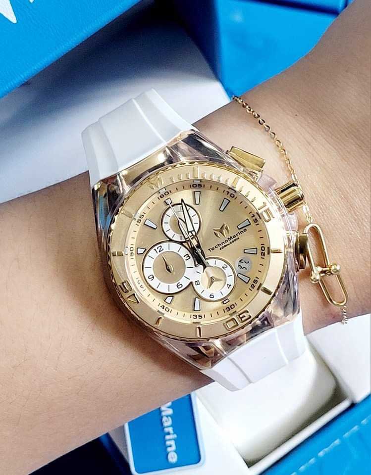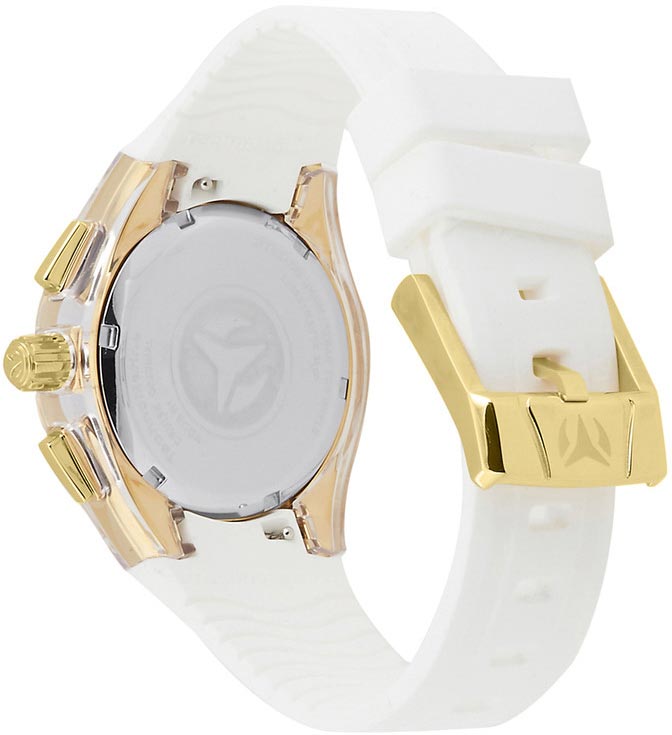Эти часы по достоинству оценят девушки, которые мечтали о стильном, функциональном и оригинальном аксессуаре. Женские наручные часы-хронограф Cruise Original с секундомером. Круглый стальной корпус с прозрачной силиконовой накладкой. Безель вращается в одном направлении. Циферблат выполнен по технологии Sunray (солнечные лучи) с логотипом компании TechnoMarine. Накладные метки в виде штрихов. Окошко даты находится в положении между отметками 4 и 5 часов. Стрелки и метки с люминесцентным покрытием, которое светится в темноте после непродолжительной зарядки на свету. Рифленая завинчивающаяся заводная головка с защитой. Силиконовый ремешок с классической застежкой.
