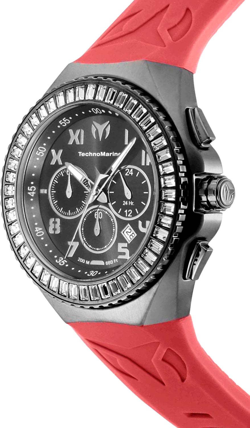 Необыкновенно модные часы, обладающие собственным индивидуальным стилем. Настоящая находка для современного мужчины. Мужские наручные часы-хронограф Ocean Manta с секундомером. 12-ти и 24-х часовой формат времени. Круглый стальной корпус. Безель украшен кристаллами. Циферблат с логотипом компании ''TechnoMarine'' выполнен по технологии Sunray (солнечные лучи). Накладные метки в виде римских и арабских цифр и штрихов. Окошко даты находится в положении 5 часов. Стрелки с люминесцентным покрытием, которое светится в темноте после непродолжительной зарядки на свету. Рифленая завинчивающаяся заводная головка с защитой. Силиконовый ремешок с классической застежкой.