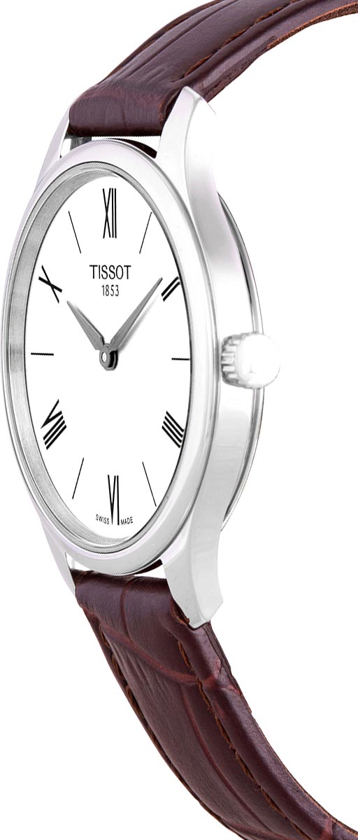 Выполненные в классическом стиле эти элегантные часы будут идеальным аксессуаром, дополняющим деловой образ. Высококачественные швейцарские наручные часы Tradition Lady. Круглый стальной корпус. Острые стрелки в стиле Alpha. Секундная стрелка отсутствует. Метки в виде римских цифр и штрихов. Рифленая заводная головка. Удобный кожаный ремешок с раскладывающейся застежкой.