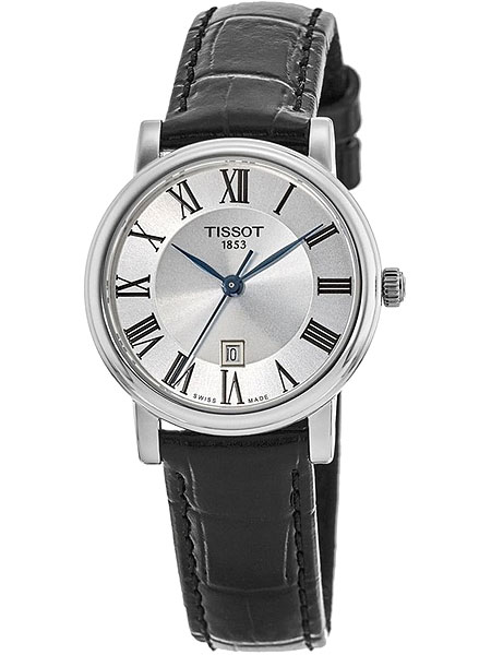 Часы Tissot Carson - универсальный инструмент, который подойдет для любого времени и места, станет идеальным партнером, который будет сопровождать вас на всех важных событиях вашей жизни, чтобы каждый прожитый момент был вовремя. Классический стиль часов позволяет им никогда не устаревать, а роскошный внешний вид подчеркивается изящным дизайном циферблата и удлиненными тонкими стрелками, которые движутся по циферблату в такт времени. T-Classic Carson Premium Lady. Женские наручные часы. Ультратонкие. В механизме 3 камня. Функция индикации заряда (EOL). Круглый стальной корпус c полированной поверхностью. Циферблат выполнен по технологии Sunray (солнечные лучи). Узкие листовидные стрелки в стиле Feuille. Метки в виде римских цифр. Окошко даты находится в положении 6 часов. Рифленая заводная головка. Удобный кожаный ремешок с классической застежкой. Имеется мужской вариант модели T122.410.16.033.00.