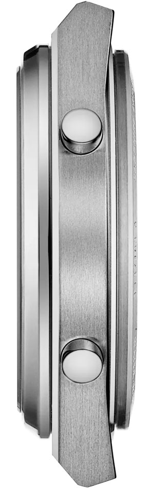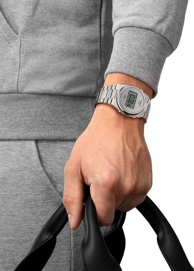 Мужские часы-хронограф в ретро-стиле PRX Digital. 12-ти и 24-х часовой формат времени. Второй часовой пояс. Индикатор даты и дня недели. Функция индикации заряда (EOL). Стальной браслет с раскладывающейся застежкой и системой быстрой замены.