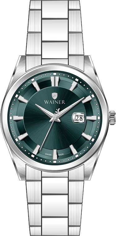Мужские наручные часы. Круглый стальной корпус. Разноуровневый циферблат выполнен по технологии Sunray (солнечные лучи). Метки в виде штрихов. Окошко даты с увеличительным стеклом находится в положении 3 часа. Рифленая заводная головка. Браслет с раскладывающейся застежкой.
