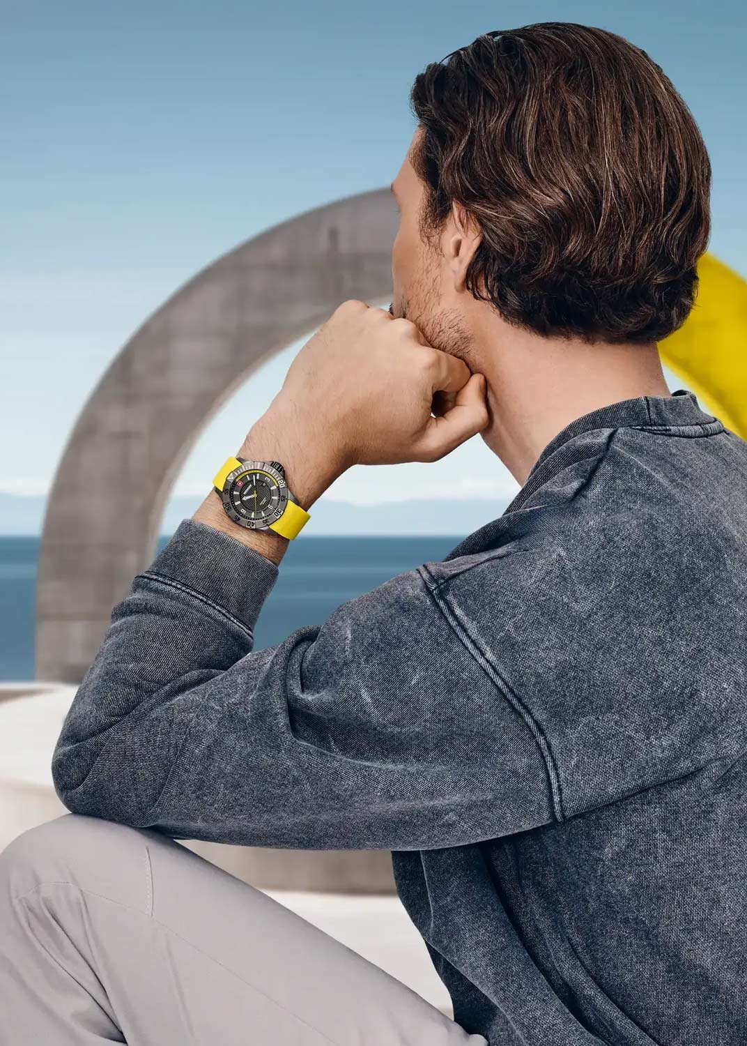 Мужские наручные часы Seaforce Sport. Круглый стальной корпус. Безель вращается в одном направлении. Циферблат с метками в виде штрихов и арабских цифр. Окошко даты находится в положении 3 часа. Рифленая заводная головка с защитой. Завинчивающаяся задняя крышка. Силиконовый ремешок с классической застежкой.