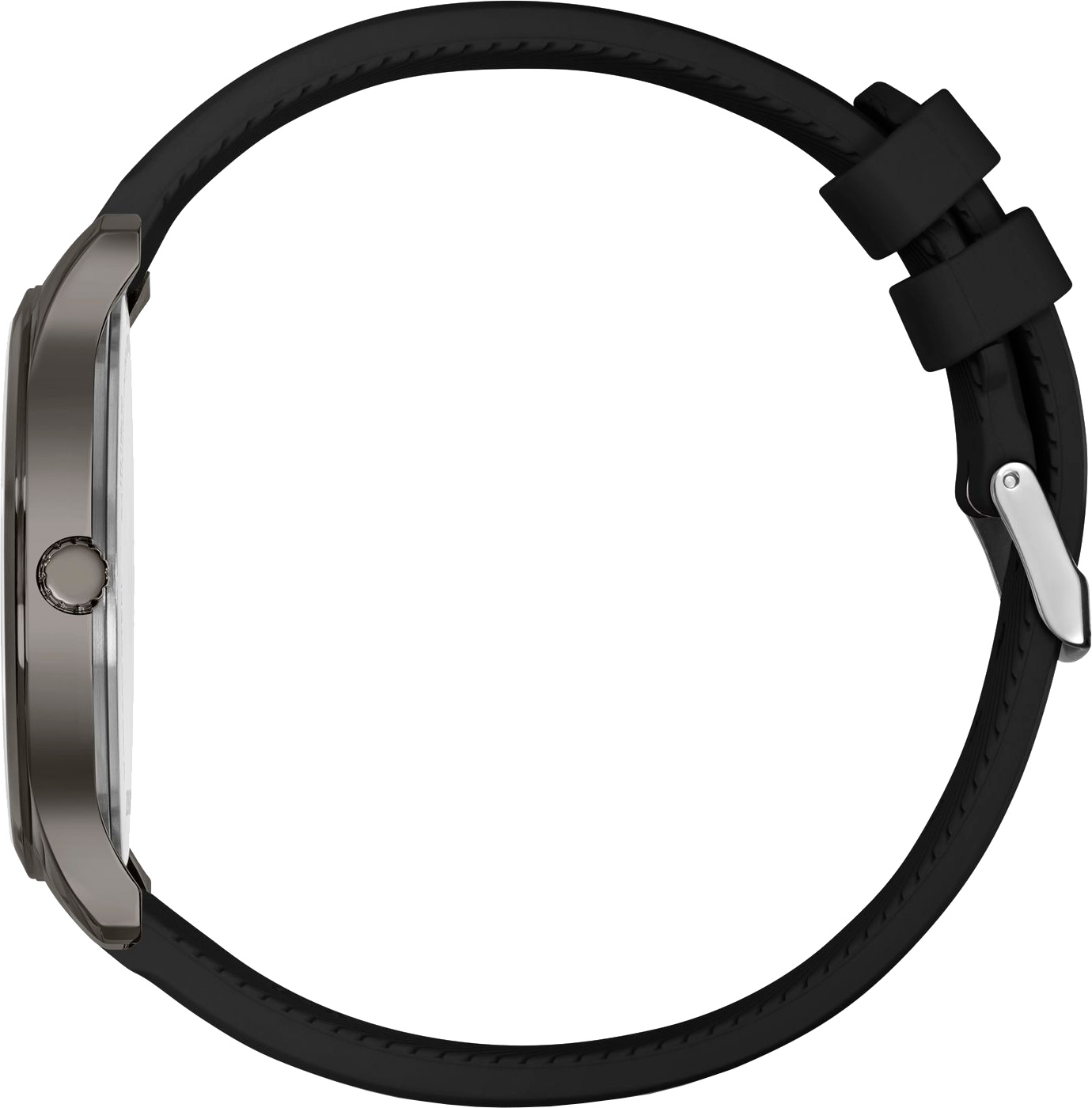 Удобные часы швейцарского производства в минималистичном спортивном дизайне для активного образа жизни. Мужские часы. Круглый стальной корпус с PVD покрытием. Циферблат с метками в виде арабских цифр. 12-ти и 24-х часовой формат времени. Окошко даты в положении 6 часов. Рифленая заводная головка. Силиконовый ремешок с классической застежкой.