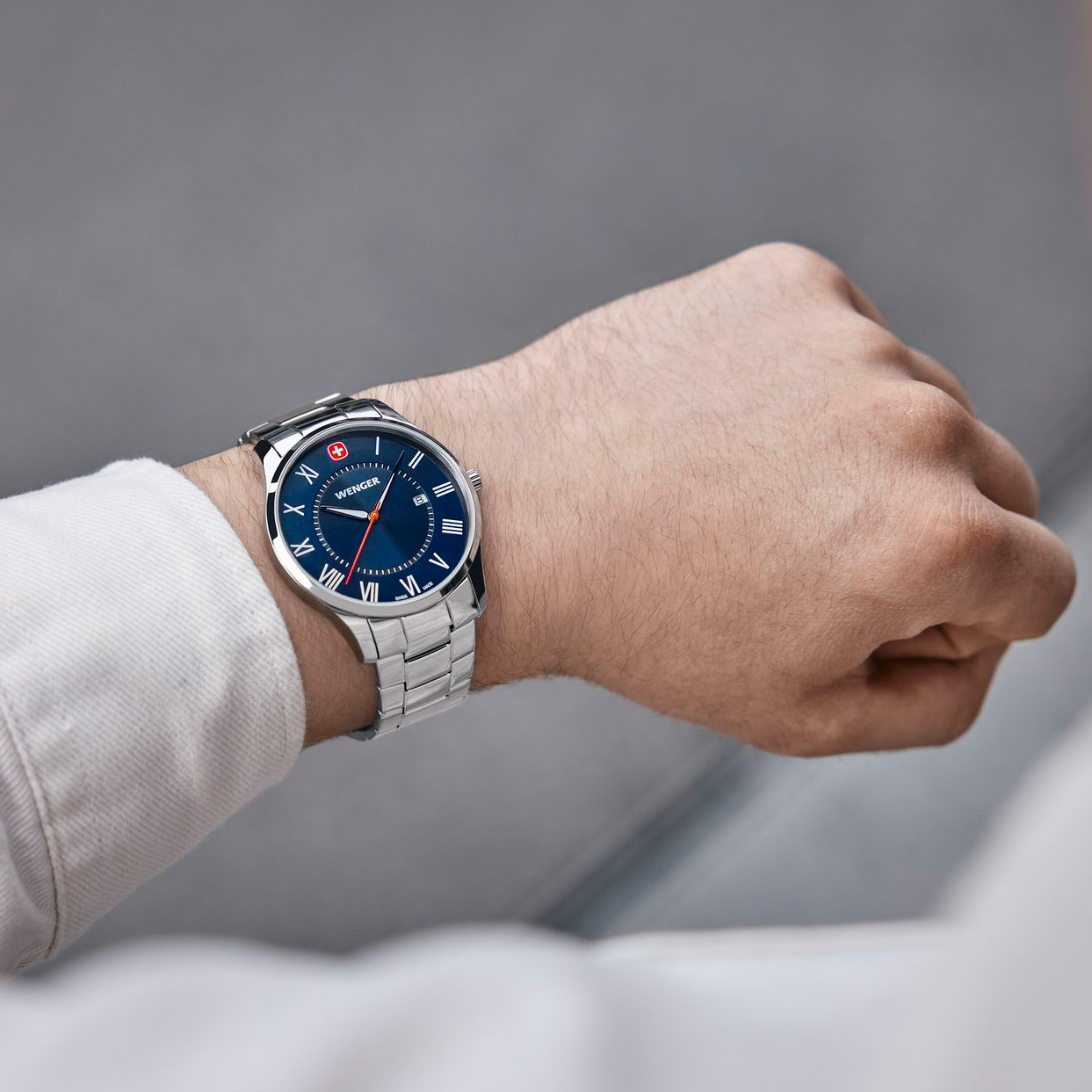 Классический вариант повседневных часов с изысканным минималистичным дизайном - идеальный аксессуар на каждый день. Мужские часы. Круглый стальной корпус. Циферблат выполнен по технологии Sunray (солнечные лучи). Метки в виде римских цифр. Окошко даты в положении 3 часа. Рифленая заводная головка. Браслет с раскладывающейся застежкой.