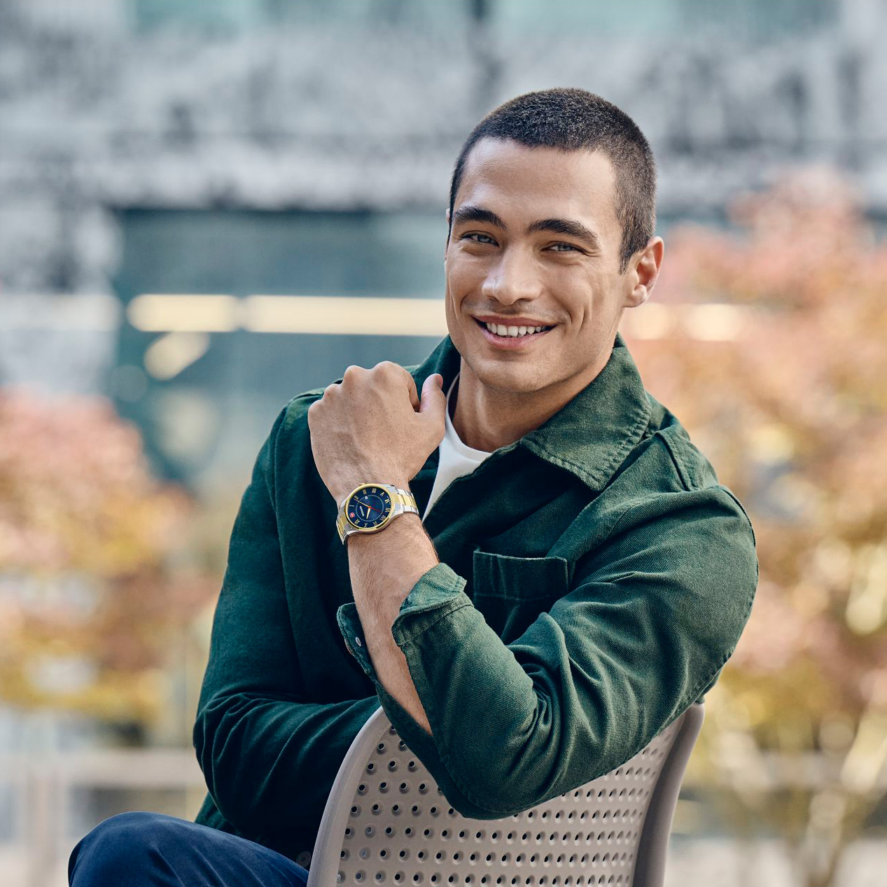 Классический вариант повседневных часов с изысканным минималистичным дизайном - идеальный аксессуар на каждый день. Мужские часы. Круглый стальной корпус с частичным PVD покрытием. Циферблат выполнен по технологии Sunray (солнечные лучи). Метки в виде римских цифр. Окошко даты в положении 3 часа. Рифленая заводная головка. Браслет с раскладывающейся застежкой.