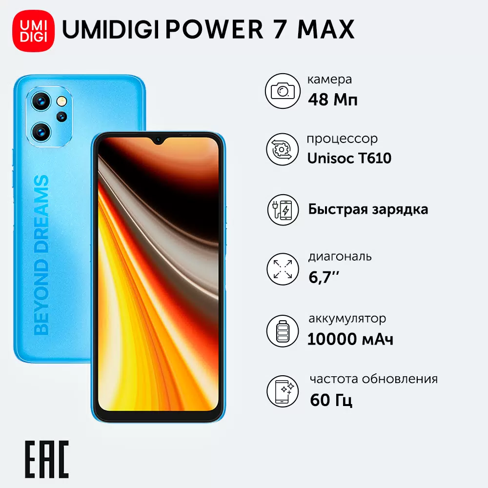 Смартфон Umidigi Power 7 Max 6/128GB Blue (C.POW7-A-J-192-L-Z02) (Без Рустор)