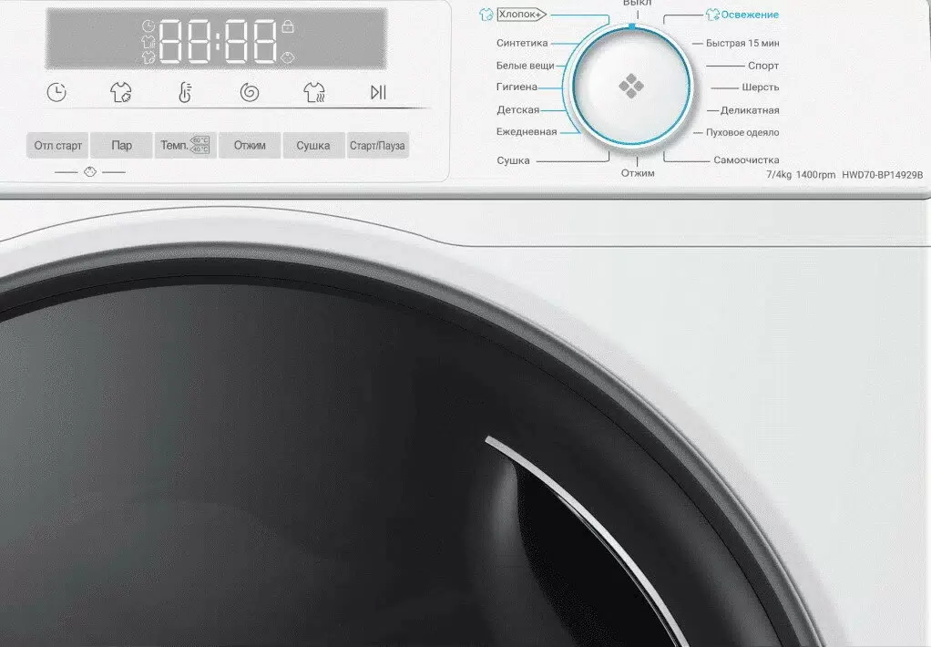 - Программы стиркибелый хлопок; быстро 15; деликатные ткани; шерсть; спортивная одежда; освежить