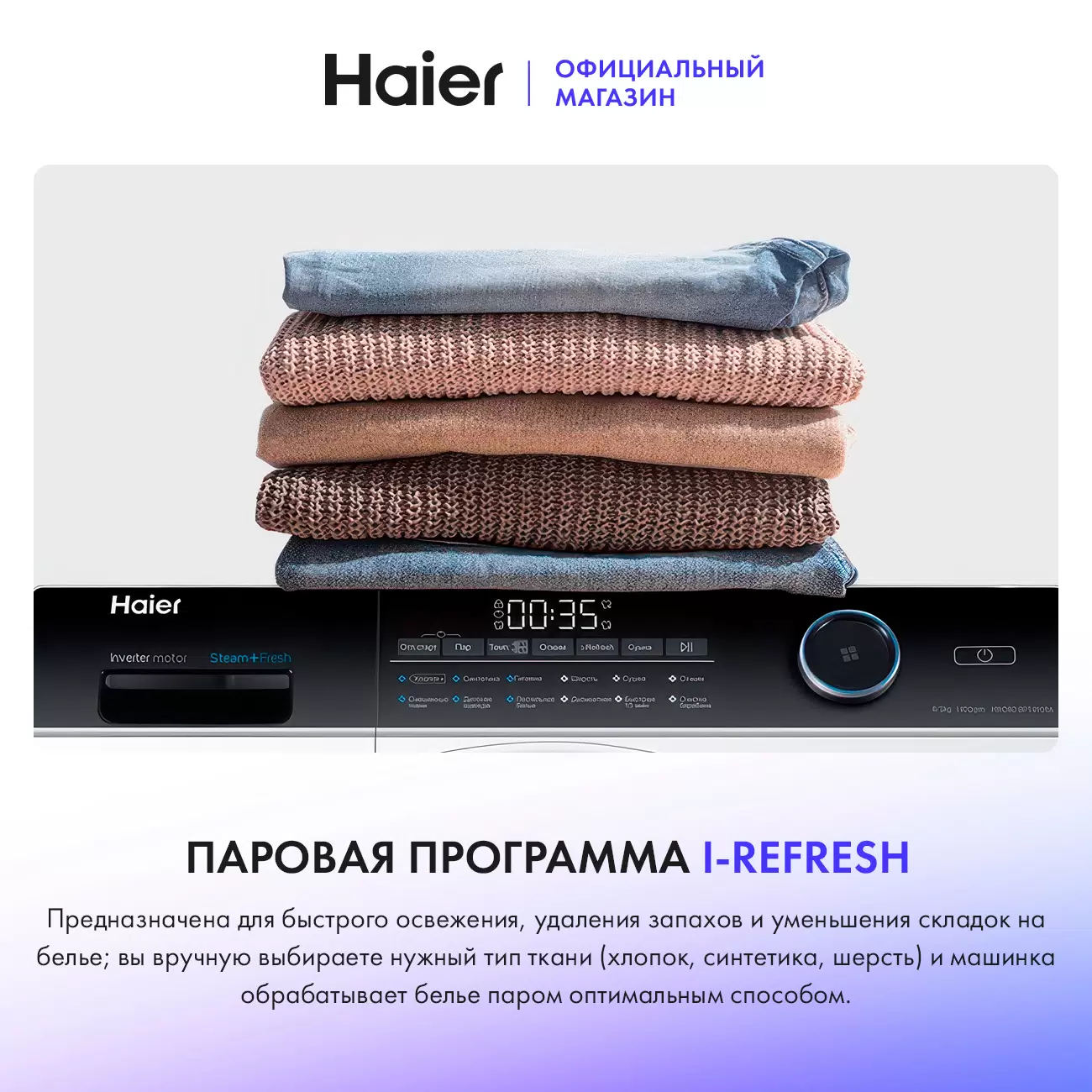 - Программы стиркиОсвежить, Сушка, Синтетика, Смешанные ткани, Деликатная стирка, Шерсть, Ежедневная стирка, Экспресс-стирка 15 мин, Спорт, Отжим, Самоочистка, Гигиена, Детская одежда, Хлопок+, Пуховое одеяло