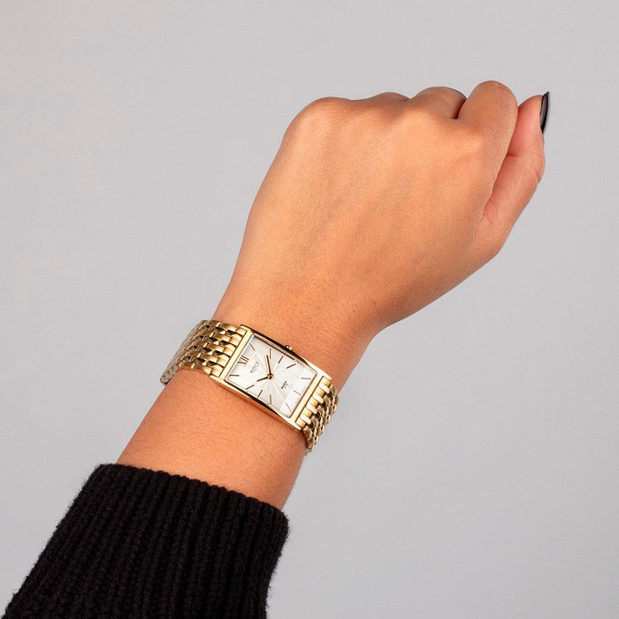 Элегантный дизайн часов выгодно подчеркнет безупречный вкус и имидж их обладательницы. Женские наручные часы Royce. Прямоугольный корпус из титана. Циферблат с метками в виде штрихов и римской цифры 12. Браслет с раскладывающейся застежкой.