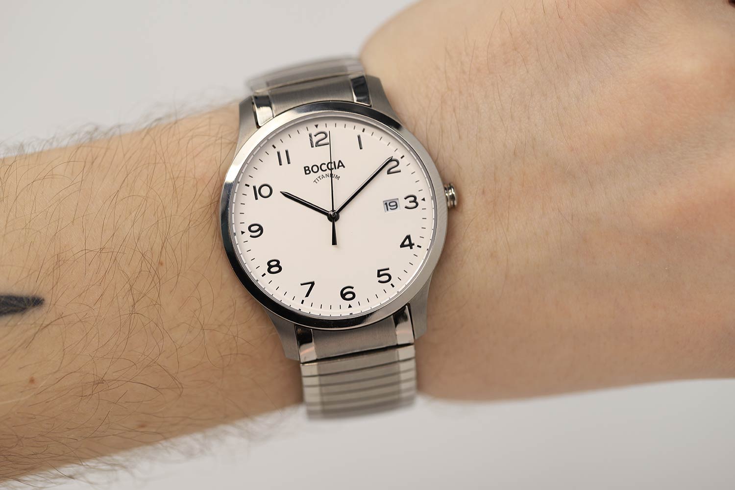 Надежные и удобные часы, выполненные из титана, гармонично вписываются в любой стиль одежды. Circle-Oval. Мужские часы с окошком даты на циферблате. Метки в виде арабских цифр. Круглый корпус на титановом браслете.