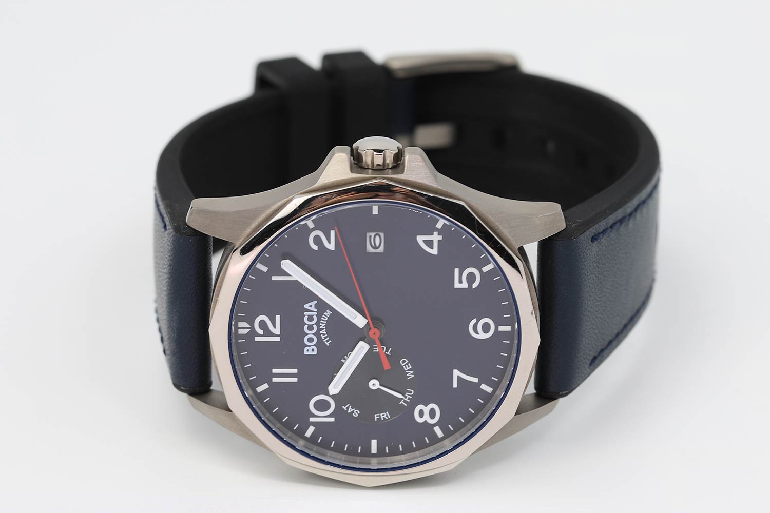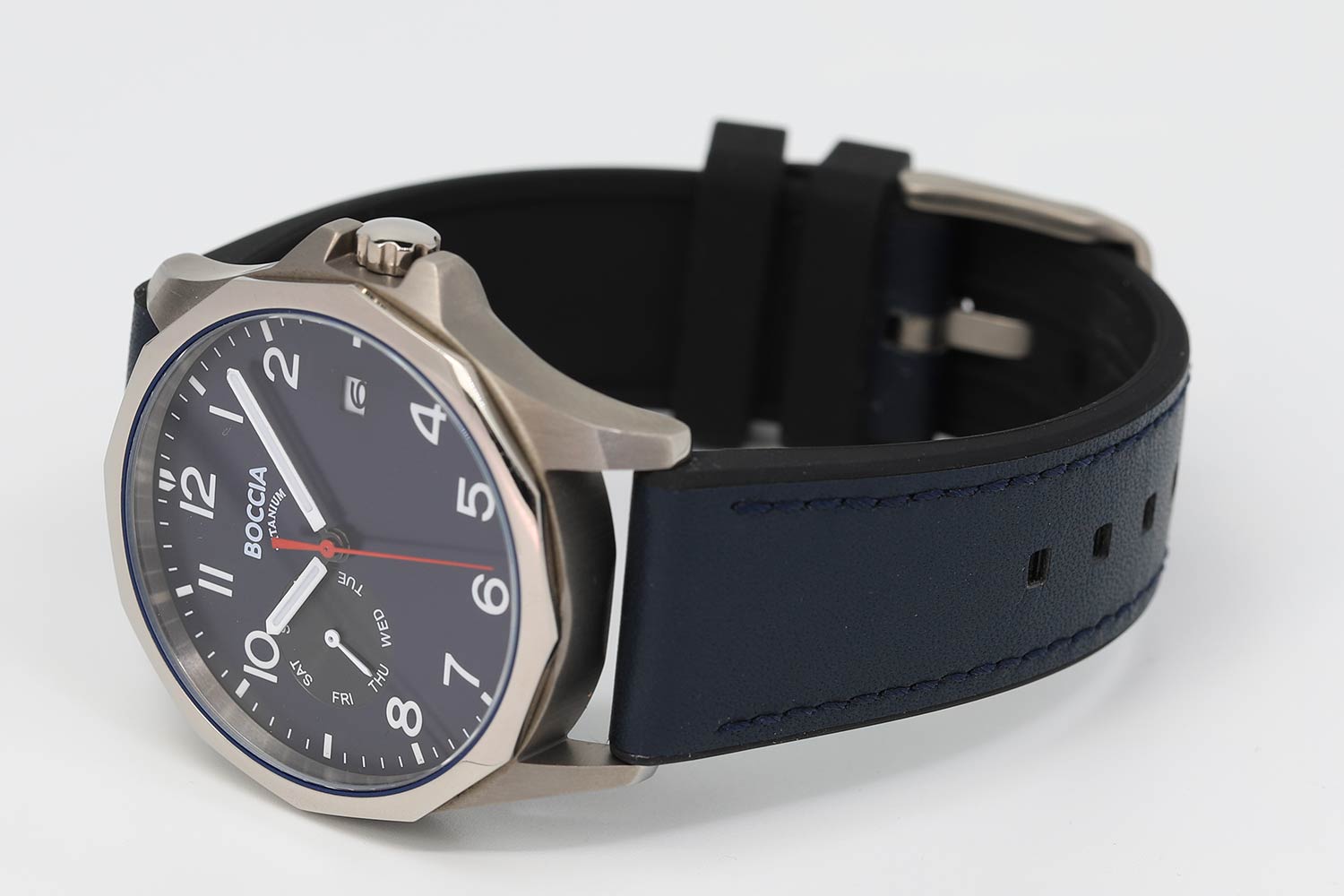 Часы с классическими чертами будут идеальным аксессуаром, дополняющим элегантный образ. Circle-Oval. Мужские часы в круглом титановом корпусе. Метки в виде арабских цифр. Окошко даты. День недели отображается на отдельном циферблате. Заводная головка с защитой. Ремешок с классической застежкой.