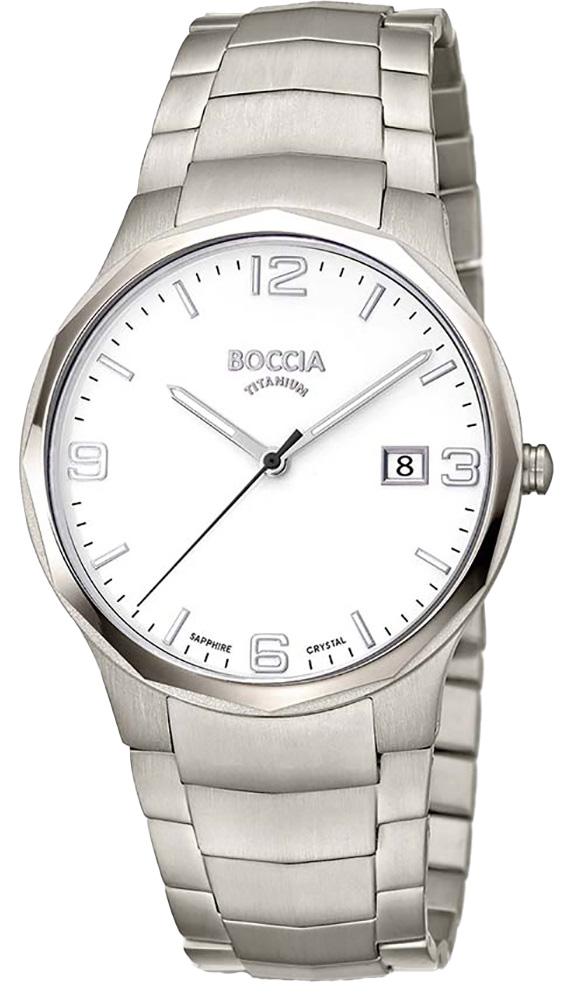 Ненавязчивая простота дизайна делает эти часы незаменимым аксессуаром на каждый день. Мужские часы с круглым титановым корпусом. Циферблат с метками в виде штрихов и арабских цифр. Окошко даты. Браслет с раскладывающейся застежкой.