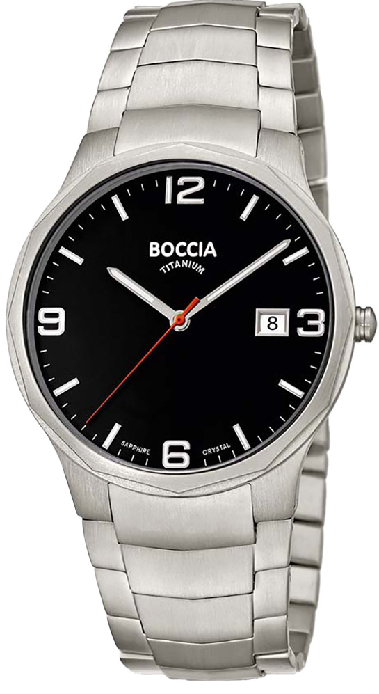 Ненавязчивая простота дизайна делает эти часы незаменимым аксессуаром на каждый день. Мужские часы с круглым титановым корпусом. Циферблат с метками в виде штрихов и арабских цифр. Окошко даты. Браслет с раскладывающейся застежкой.