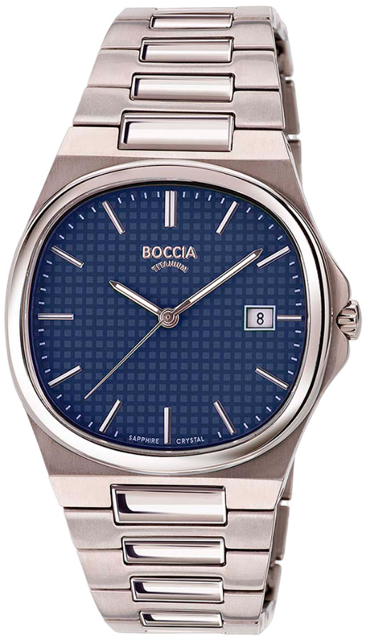 Практичные и стильные часы на титановом браслете идеальны для современного ритма жизни. Мужские часы с квадратным корпусом. Метки в виде штрихов. Окошко даты в положении 3 часа. Браслет с раскладывающейся застежкой.