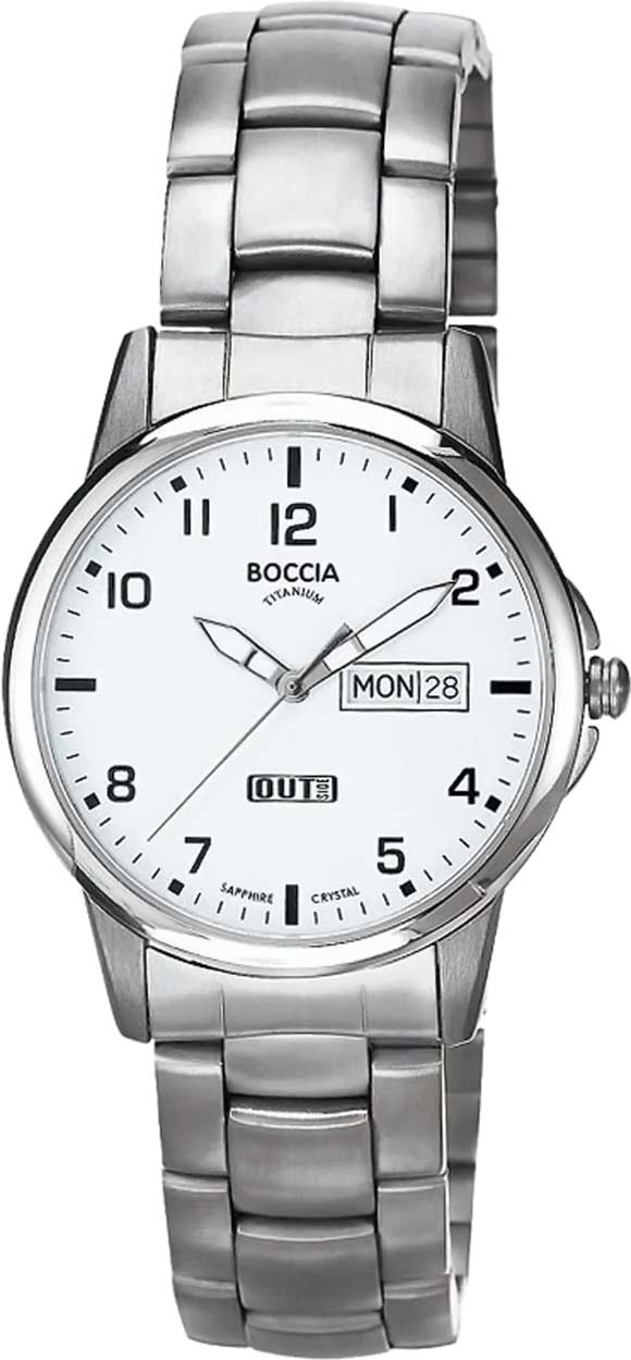 Лаконичный и в то же время практичный аксессуар смотрится очень стильно и непринужденно в любой ситуации. Мужские наручные часы. Круглый корпус из титана. Циферблат с метками в виде штрихов и арабских цифр. Окошко даты и дня недели находится в положении 3 часа. Заводная головка с защитой. Браслет с раскладывающейся застежкой.