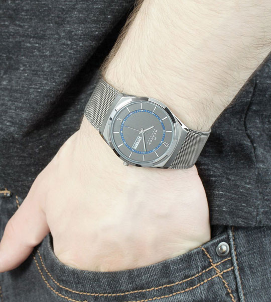 Выполненные из титана, эти часы с функциями отображения даты и дня недели станут верными помощниками в вашей повседневной жизни. Melbye Steel Mesh and Titanium Case Multifunction Watch.