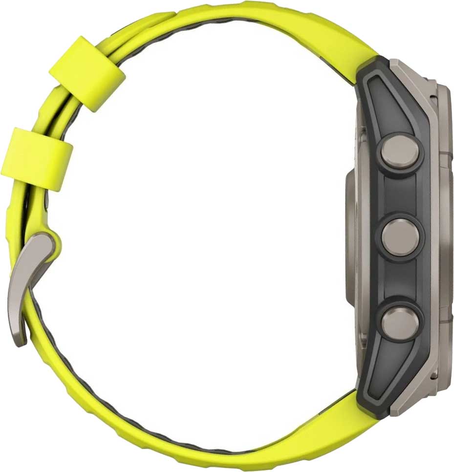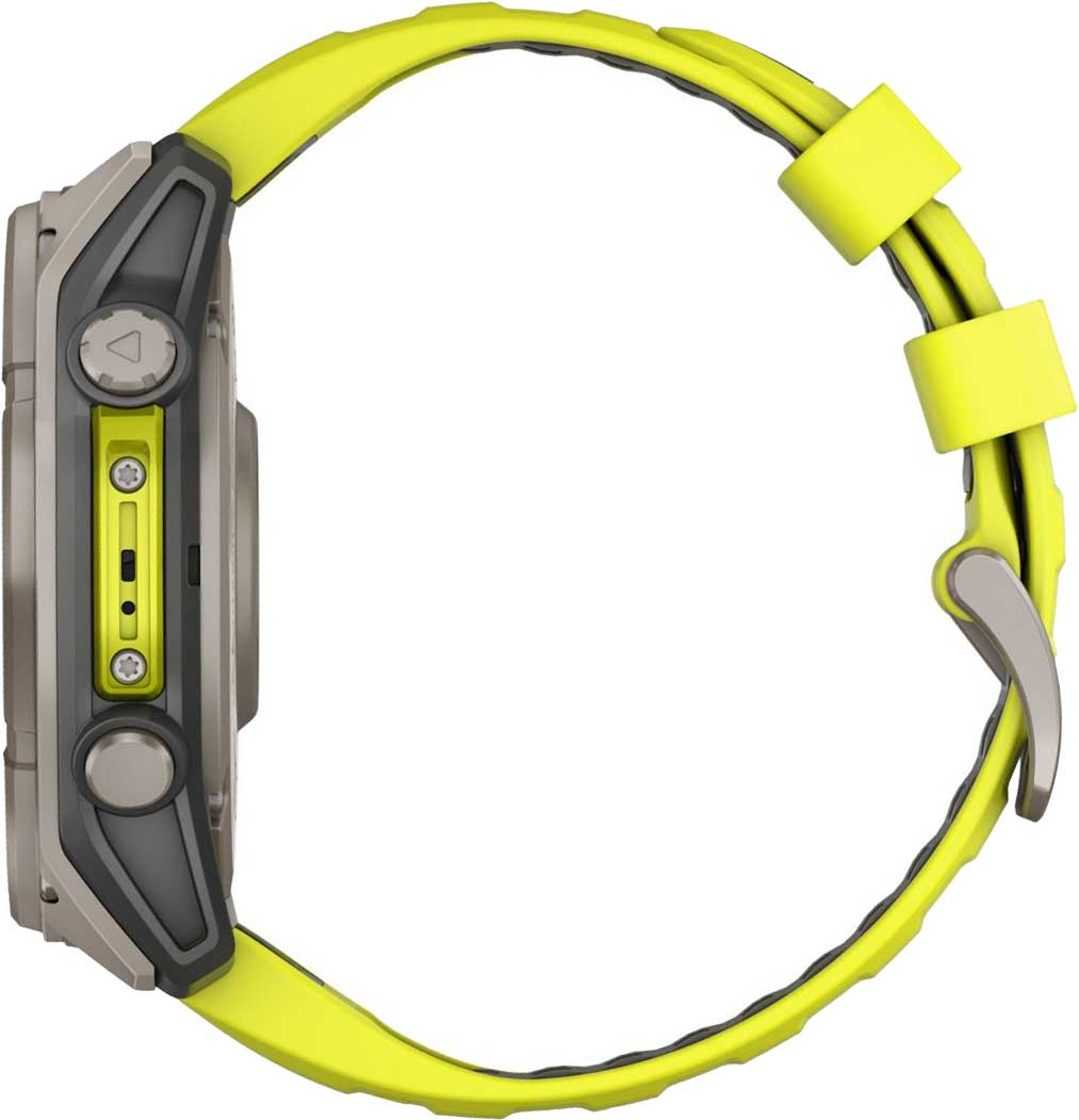 Датчики: барометрический альтиметр, компас, гироскоп, термометр, акселерометр, Pulse Ox (показывает уровень кислорода в крови), датчик освещенности, глубиномер (до 40м).
