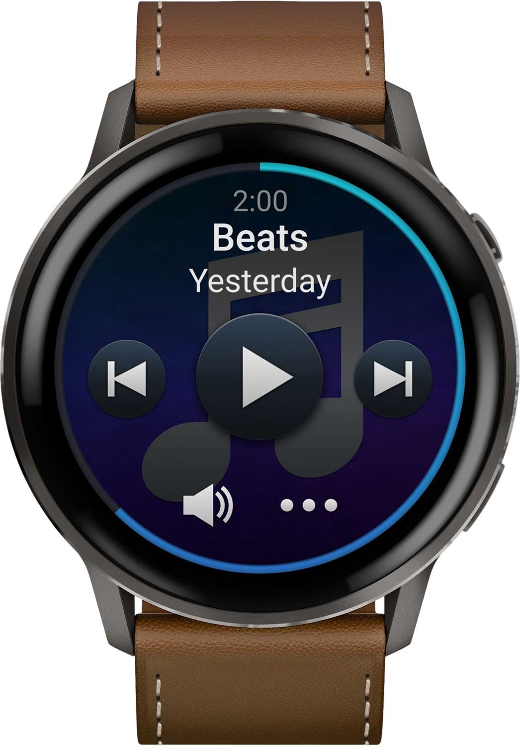 Синхронизация со смартфоном через Bluetooth: загружаемые циферблаты, виджеты и приложения, уведомления и оповещения, календарь, погода, управление воспроизведением музыки, поиск телефона. Система бесконтактных платежей Garmin Pay.
