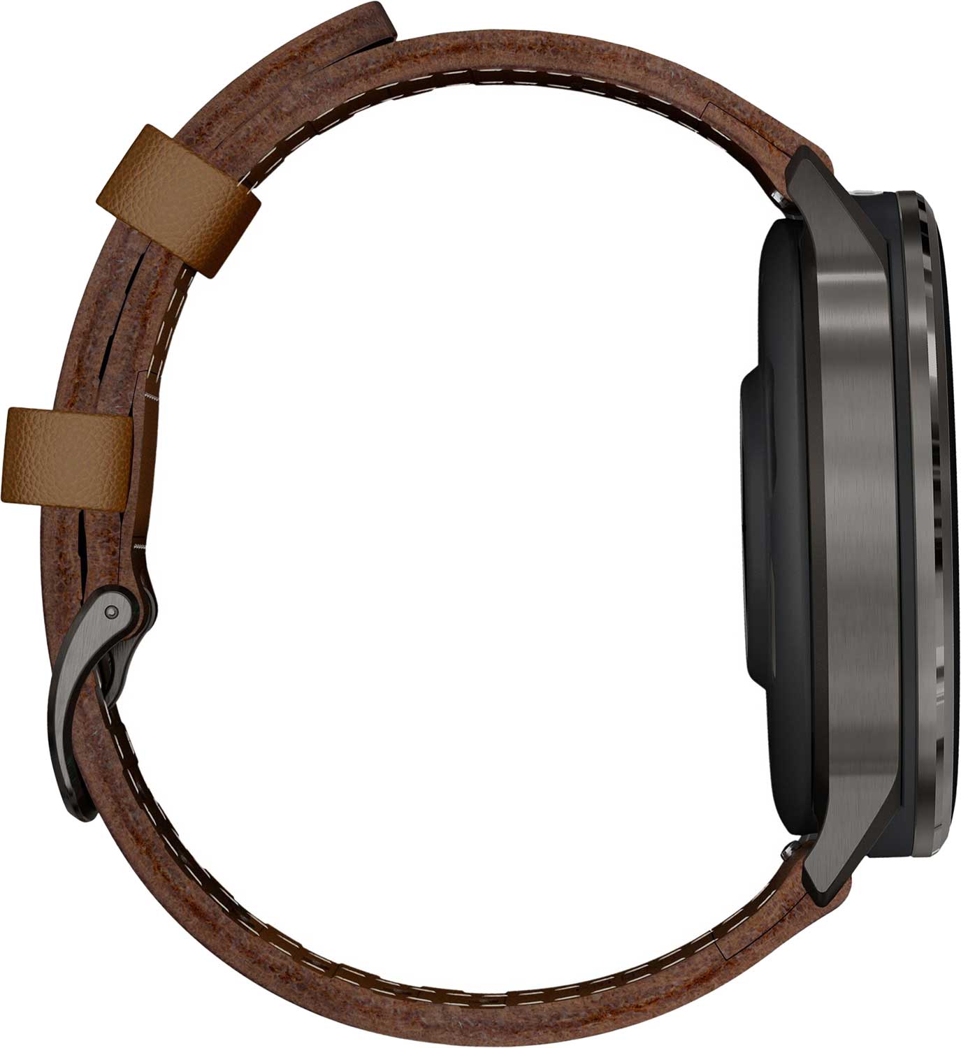 Цветной сенсорный AMOLED циферблат 1,4‘’ (35,3мм) разрешением 454x454. Дополнительные функции: 12-ти и 24-х часовой формат времени, второй часовой пояс, секундомер, SPLIT-хронограф, таймер, будильник, время восхода/захода солнца, автоматический переход на зимнее и летнее время.