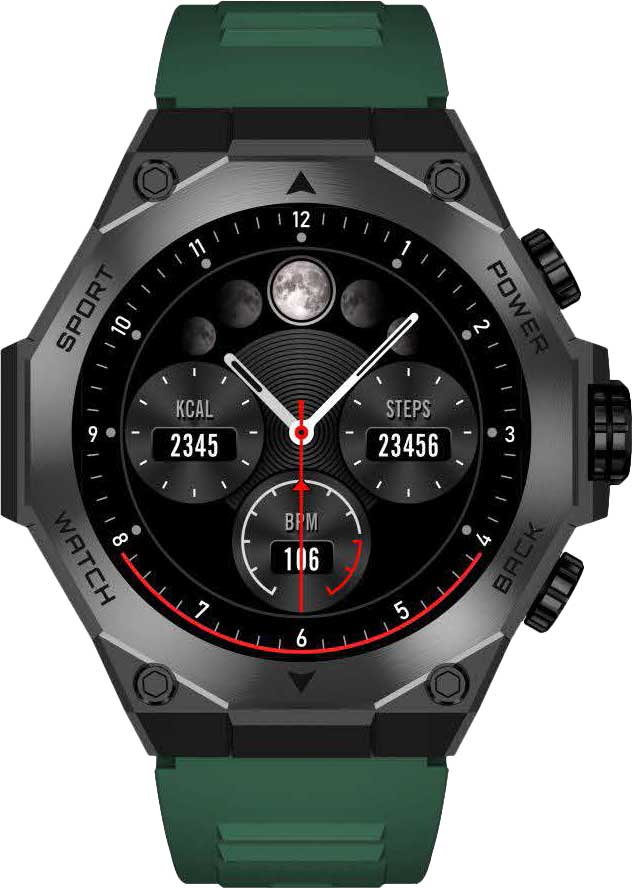 Смарт-часы станут верным и незаменимым помощником для ваших тренировок. Часы с мультиспортивными профилями. Отслеживание активности: шаги, калории и пульс. Цветной сенсорный AMOLED дисплей 1,43‘’ разрешением 466x466. Дополнительные функции: секундомер, SPLIT-хронограф, таймер, будильник. Измерение уровня кислорода в крови. Синхронизация со смартфоном iPhone, Android через Bluetooth: уведомления и оповещения, календарь, погода, поиск телефона, управление воспроизведением музыки, камерой и др. Мировое время. Перезаряжаемый аккумулятор. Индикатор заряда аккумулятора. Время работы на одной зарядке аккумулятора: 5-7 дней в режиме часов, до 15 дней в режиме ожидания. Беспроводная зарядка. Защищены по стандарту IP67. Ремешок с классической застежкой. Производитель оставляет за собой право вносить изменения во внешний вид часов.