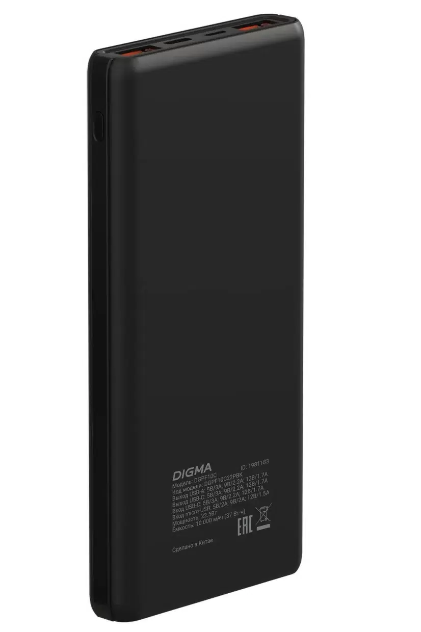 Внешний аккумулятор DIGMA DGPF10C 10000mAh, 22.5W, 3A, черный