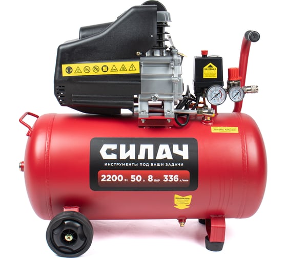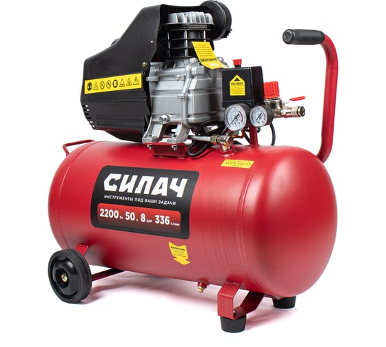Воздушный компрессор СИЛАЧ ВК-50.2200 (336л/мин,объем50л,2,2кВт,8бар,2850об/мин) (1/6) 024057
