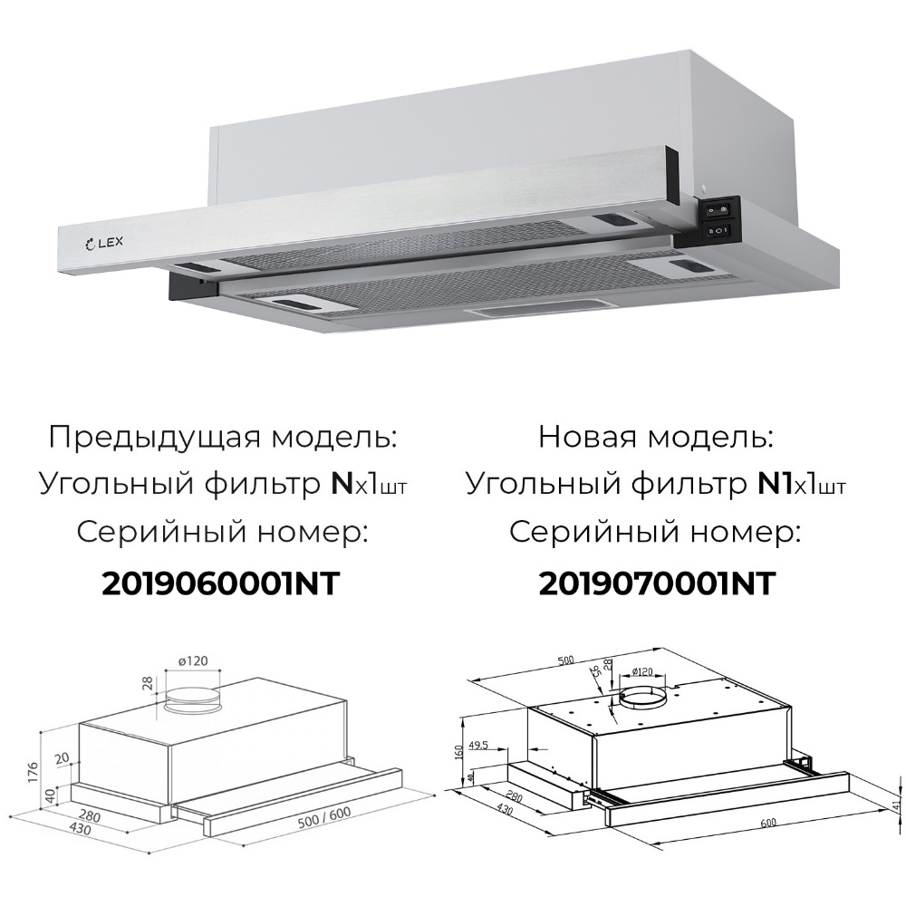 Вытяжка встраиваемая LEX HUBBLE 2M 600 INOX серебристый