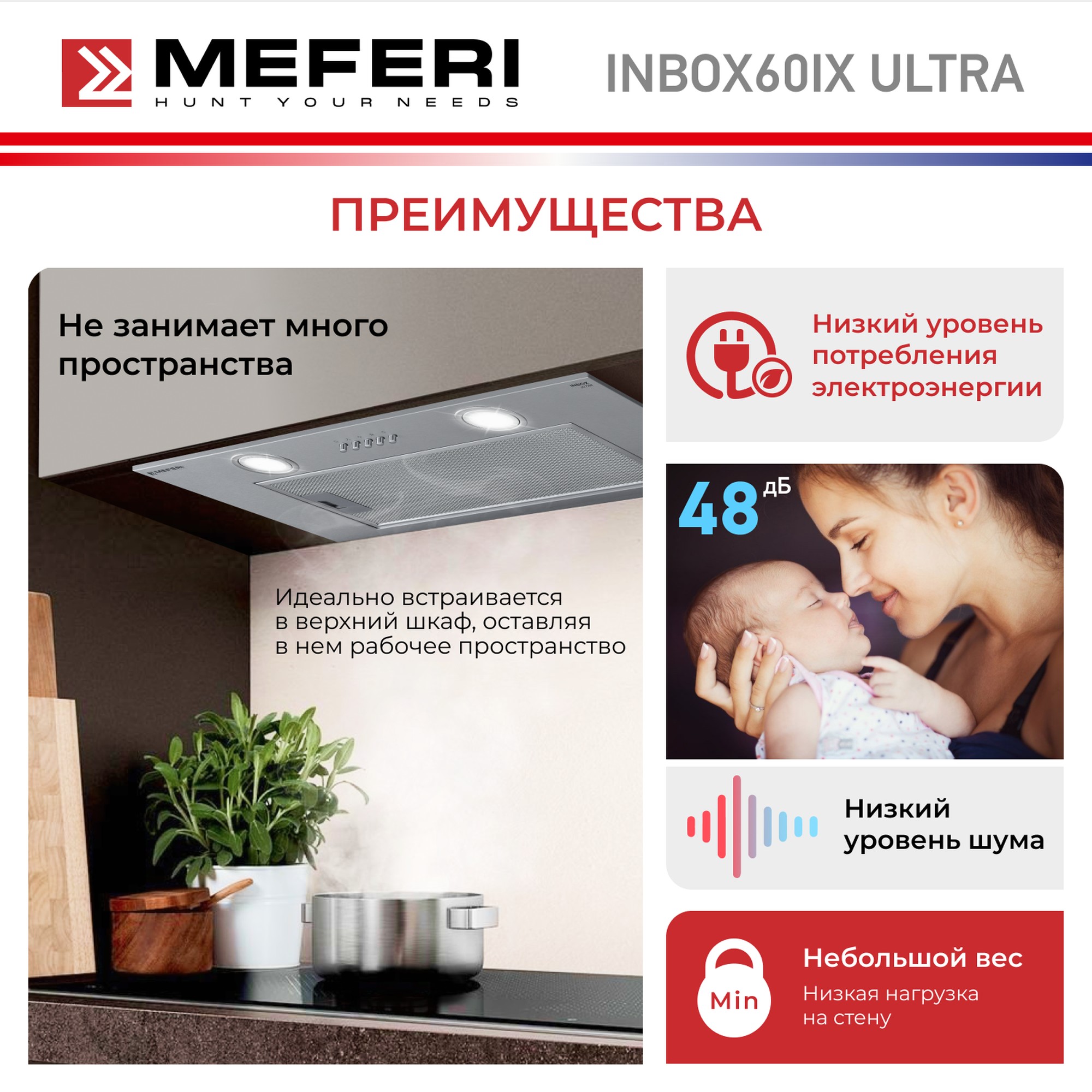 Вытяжка встраиваемая Meferi INBOX60IX ULTRA серебристая