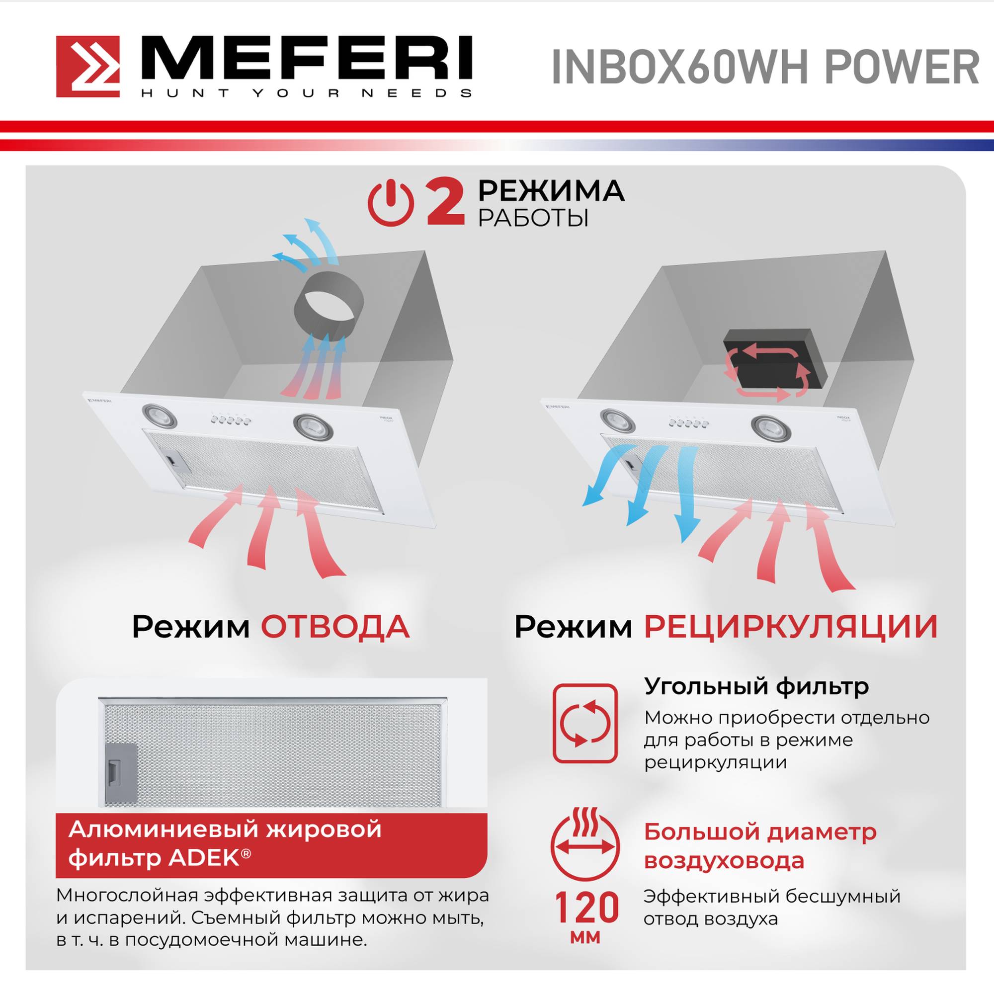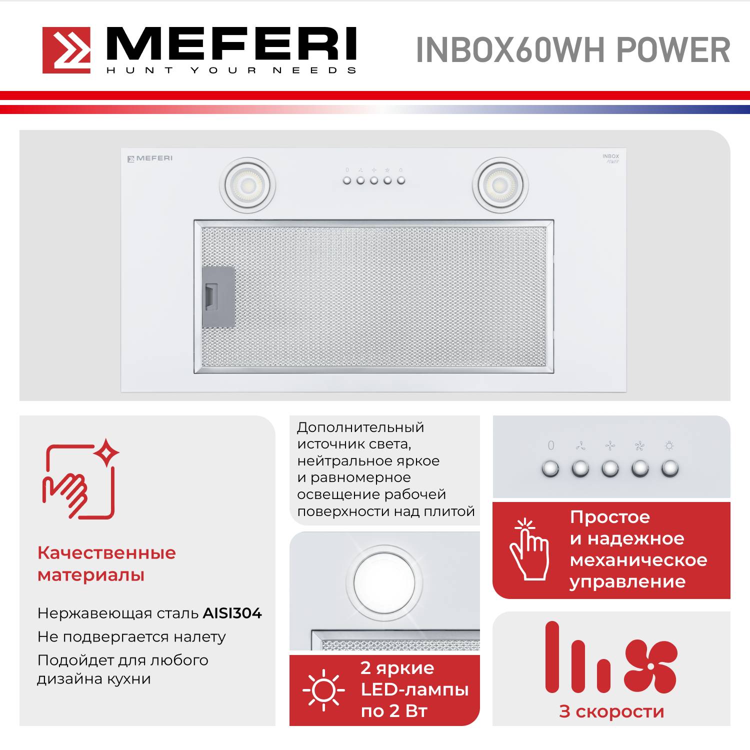Вытяжка встраиваемая Meferi INBOX60WH POWER белая