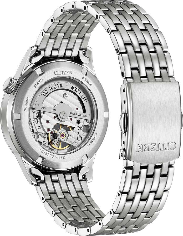 Открытый механизм искусно дополняет рифленый циферблат, придавая этим часам особый и отличительный вид. Automatic. В механизме 21 камень. Запас хода 40 часов. Сквозь прозрачное окошко на циферблате можно наблюдать за работой механизма часов. Метки в виде штрихов и римских цифр. Заводная головка находится в положении 2 часа. Прозрачная задняя крышка. Браслет с раскладывающейся застежкой.